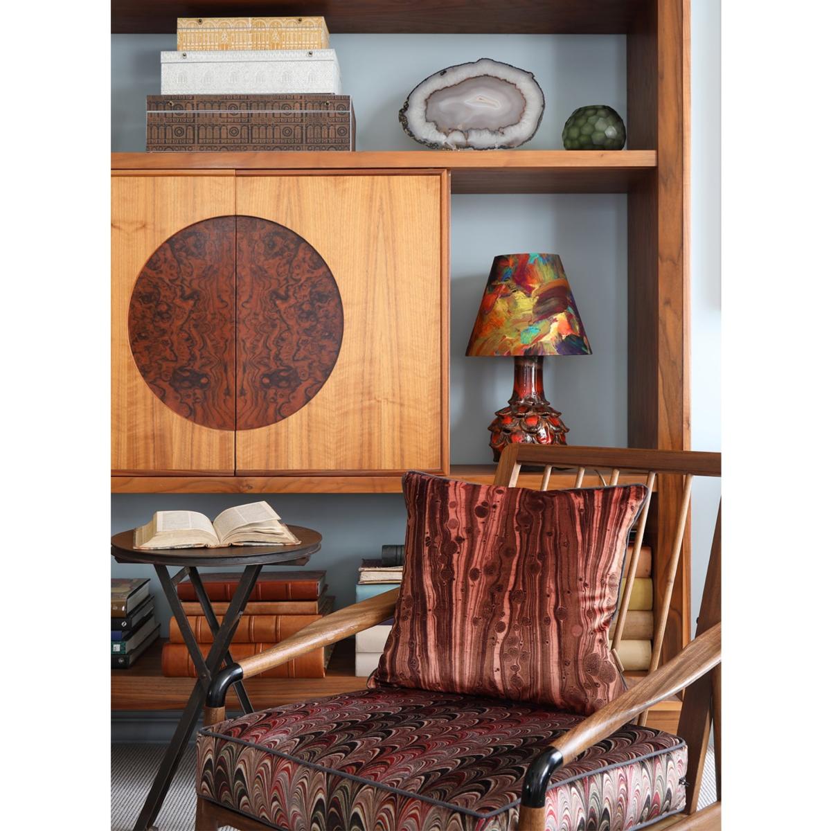 This cushion is a great way to introduce texture and a touch of luxury to both contemporary and bohemian interiors. I love the bold zebra velvet in black and brown oak; it’s versatile enough to sit on a neutral-toned sofa or in a layered arrangement amidst contrasting patterns. Its rich, tactile fabric makes it perfect for adding comfort while also making a style statement. For practical styling, consider pairing it with other plush textiles or natural materials like wood and leather for an effortlessly curated look. It works well in living rooms or bedrooms, especially when you want to elevate a space with a hint of exotic influence without overpowering the overall aesthetic.