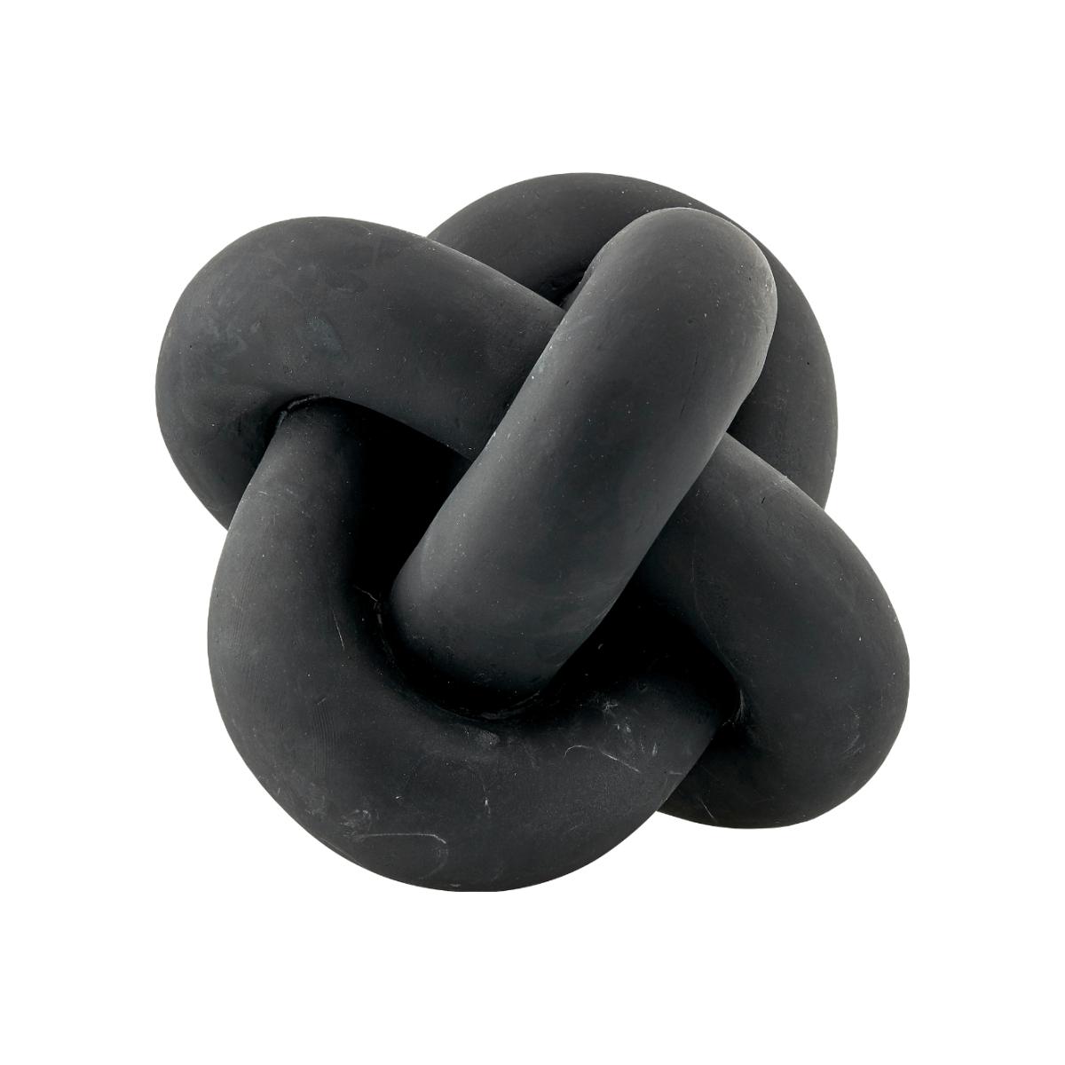 I love this knot sculpture for its modern, architectural feel and tactile black ceramic finish. It works particularly well in contemporary or minimalist interiors, adding visual interest without overwhelming the space. For practical styling, consider placing it on a neutral console table or a sleek bookshelf to serve as a statement piece. Pairing it with other monochrome accessories or natural textures like wood and stone can enhance its sculptural appeal. Its bold form makes it versatile enough to stand alone or to complement larger statement collections, making it a clever choice for adding a touch of sophistication to a variety of interiors.