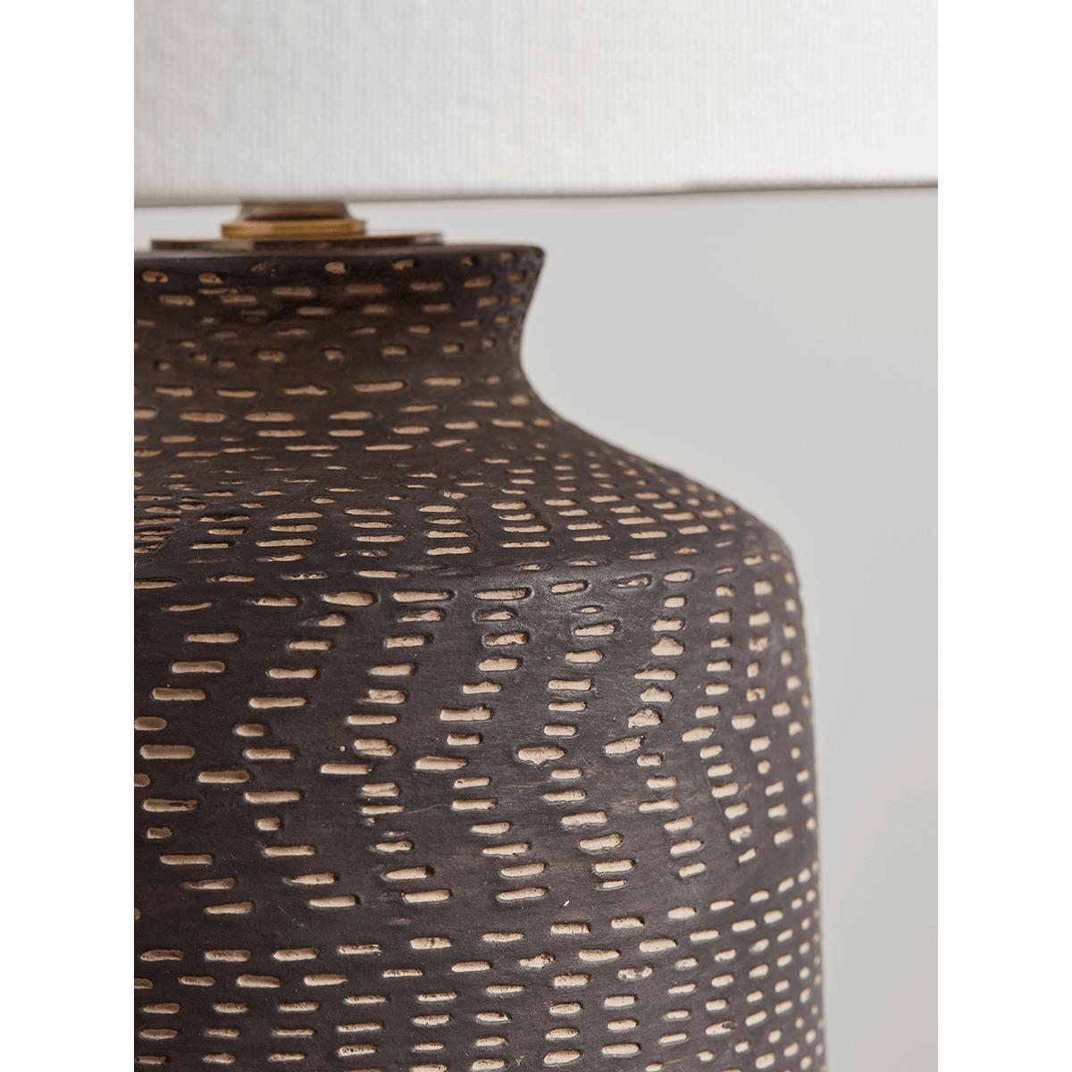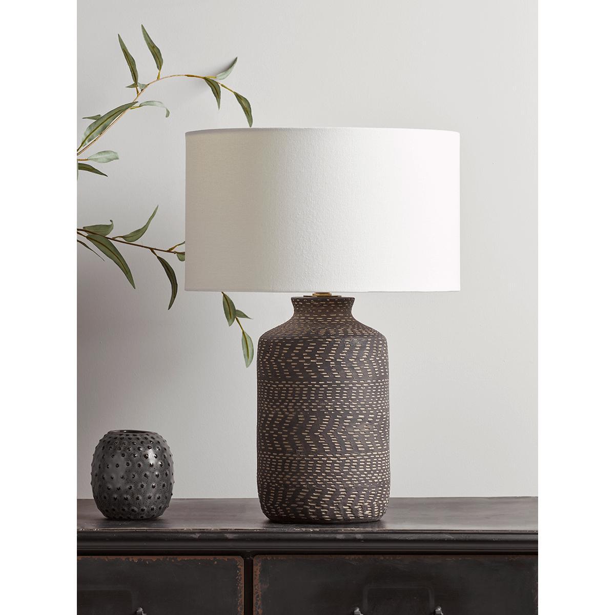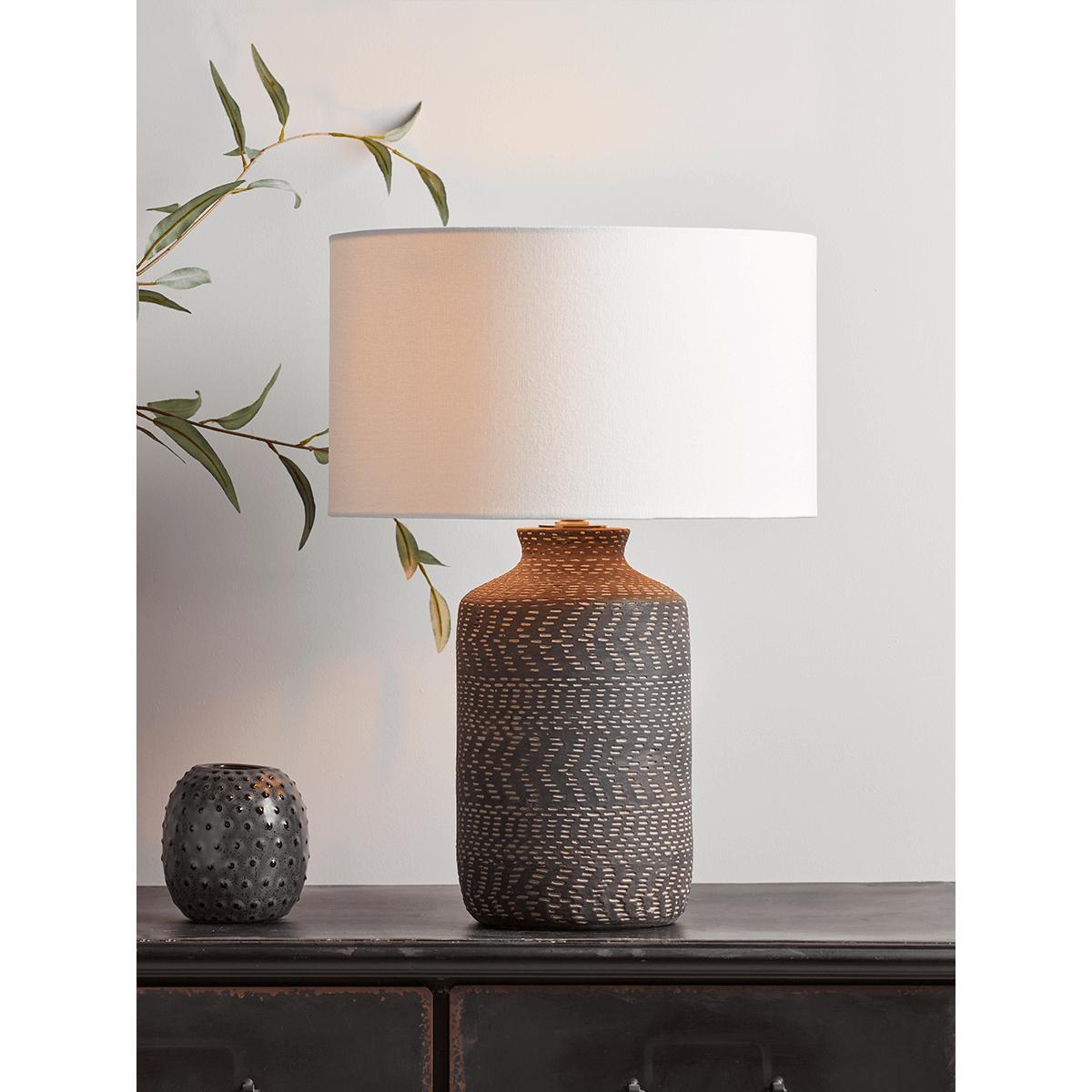 Make a statement in your office or living space with our bold black table lamp. Complete with a large drum shade our lamp has a characterful textured surface, to bring an edge to most interior looks.
