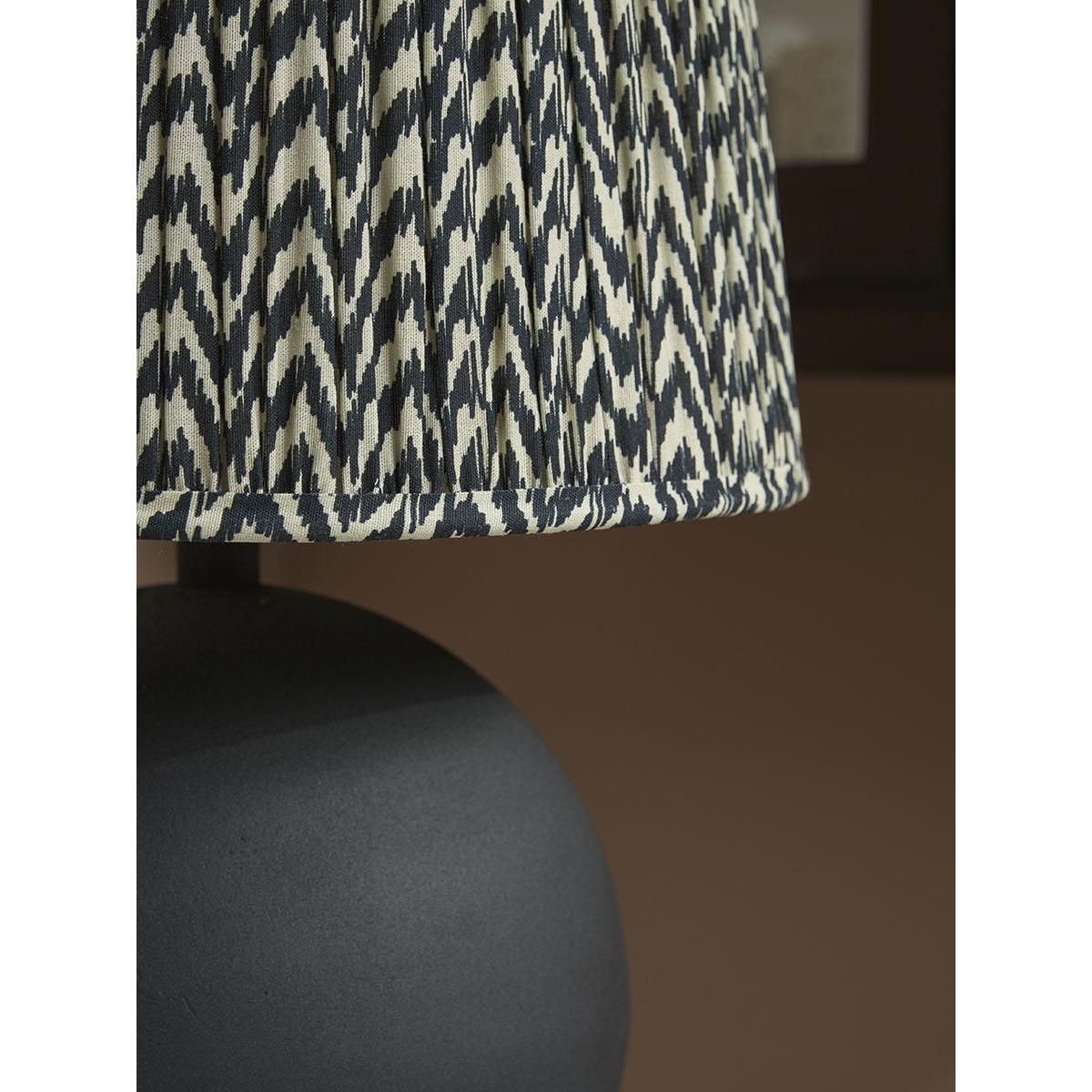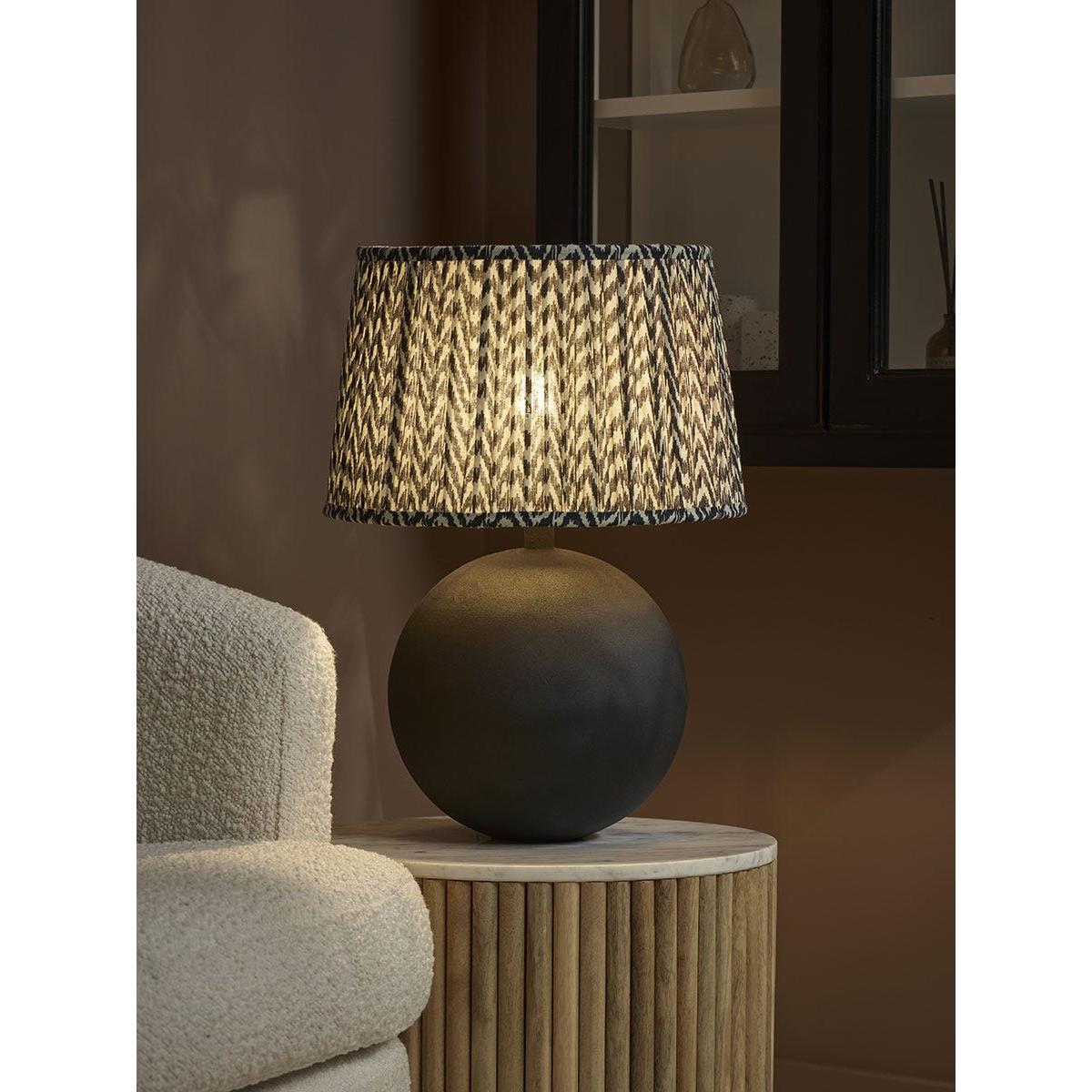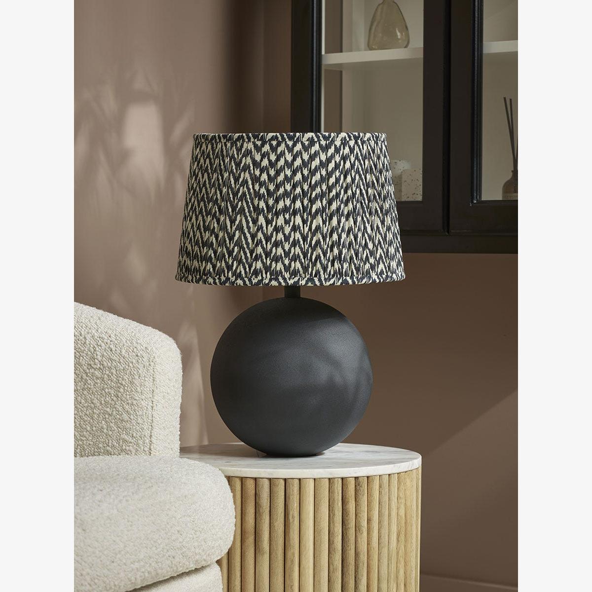 I love this lamp for its versatile design and striking pattern, making it a great statement piece in both modern and eclectic interiors. Its black chevron shade adds visual interest without overpowering other elements in the space, while the rounded base provides a sleek, sculptural touch. It works particularly well on side tables or console units in living rooms, bedrooms, or even hallways. For styling tips, consider pairing it with neutral tones or textured fabrics to highlight its pattern, or group it with similarly monochromatic accents for a cohesive look. Practicality-wise, it’s ideal for creating cosy ambient lighting, especially in spaces where you want to add a touch of personality without cluttering the decor.