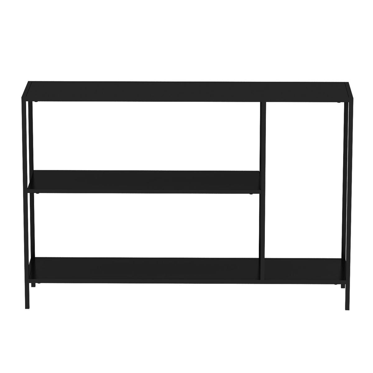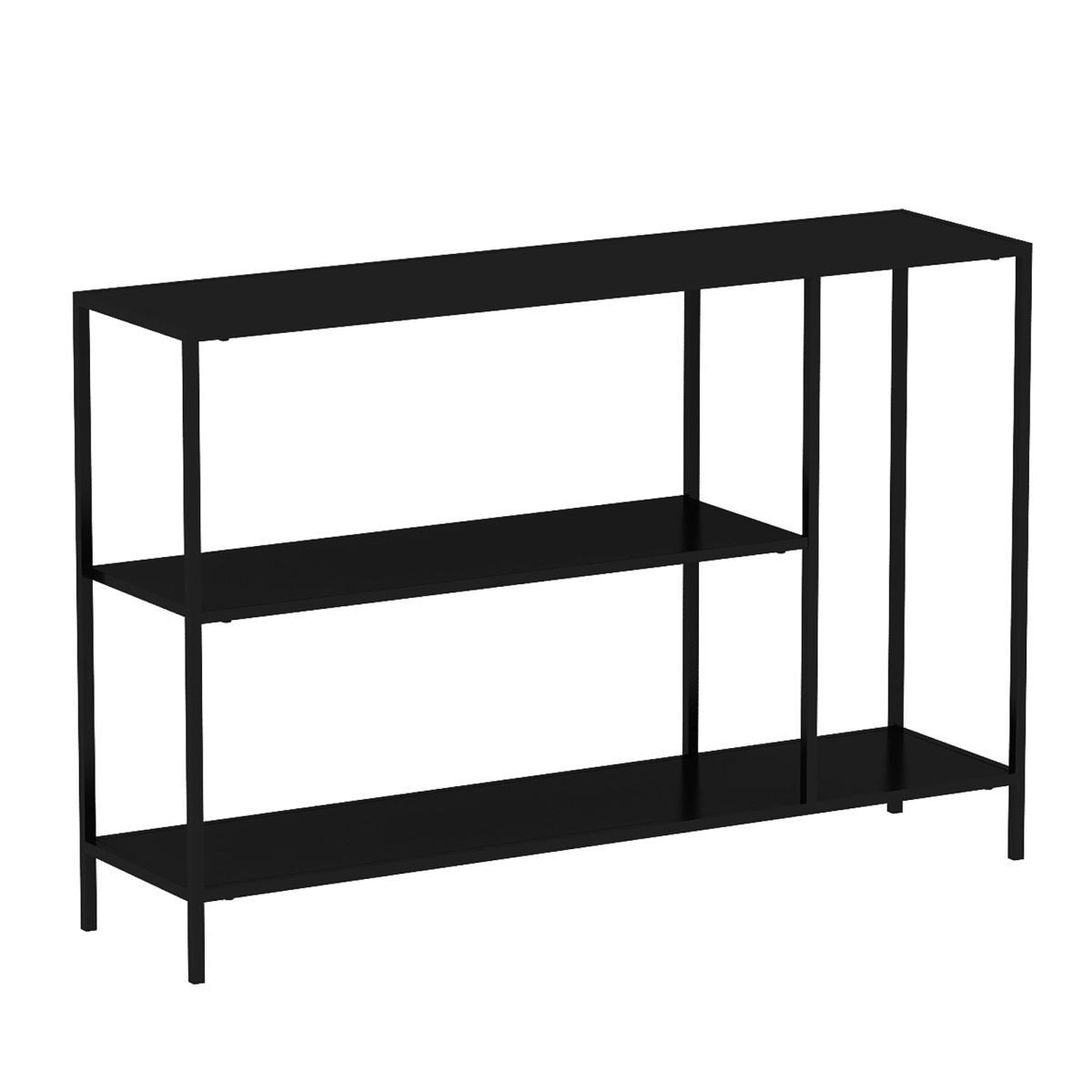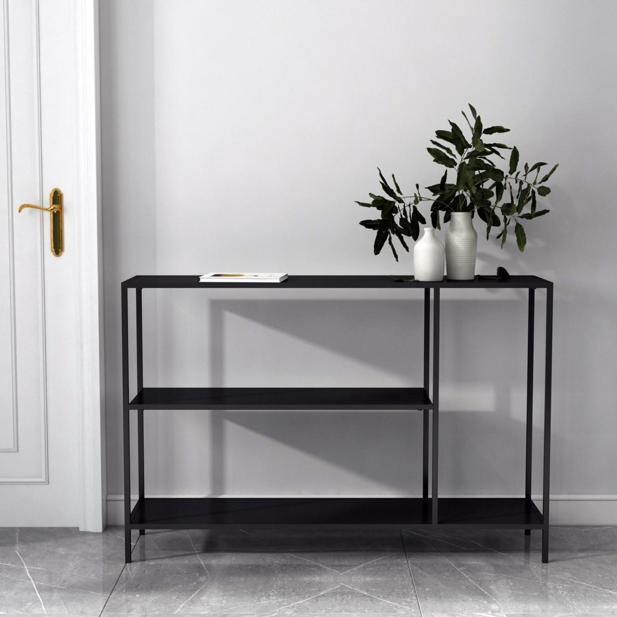 I love the black console table shelving unit for its sleek, versatile design that complements a variety of interiors, from modern minimalist to industrial styles. It works particularly well in living rooms or hallways as a practical storage solution while adding visual interest. When styling, consider balancing decorative pieces like art prints or minimal plants on the top shelf and utilising the lower shelves for books or baskets to keep things tidy. Its understated black frame makes it easy to coordinate with other furnishings, and it’s equally suitable for displaying colourful accessories or monochrome decor, depending on your look.
