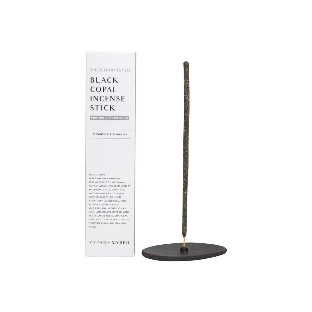 This bundle provides 7 Black Copal incense sticks and a Raw Black Incense Holder to start your rituals at home. Black Copal, also known as “Mayan Copal”, has been used by Indigenous Amazonian and Andean healers to create sacred spaces, to invite creativity, abundance, and positive loving energy. These incense sticks are hand rolled in Peru with Black Copal resin, charcoal, sawdust of Palo Santo wood, vegetable gum and bamboo stick. They are 100% natural without chemical ingredients. Their scent has the following notes: Pine, Citrus, Crisp, Rich. The ceramic incense holder is handmade with black clay.
