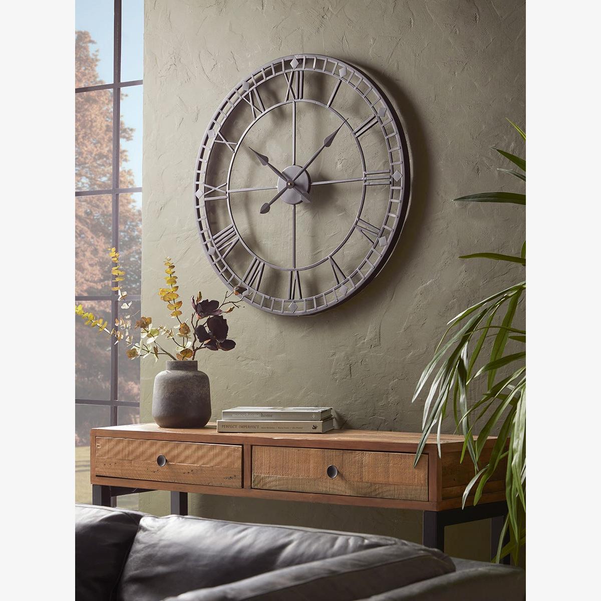I love this watch because of its bold, open-frame design which adds an industrial edge to various interiors. It works particularly well in contemporary or minimalist settings where its clean lines can stand out without overwhelming the space. For practical styling, consider placing it on a textured or colourfully painted wall to make it a statement piece. Pair it with neutral furniture and a few metallic accents to keep the look cohesive. It's also versatile enough to hang above a sideboard or in a living room corner - just keep it at eye level for easier time-checking and maximum impact.