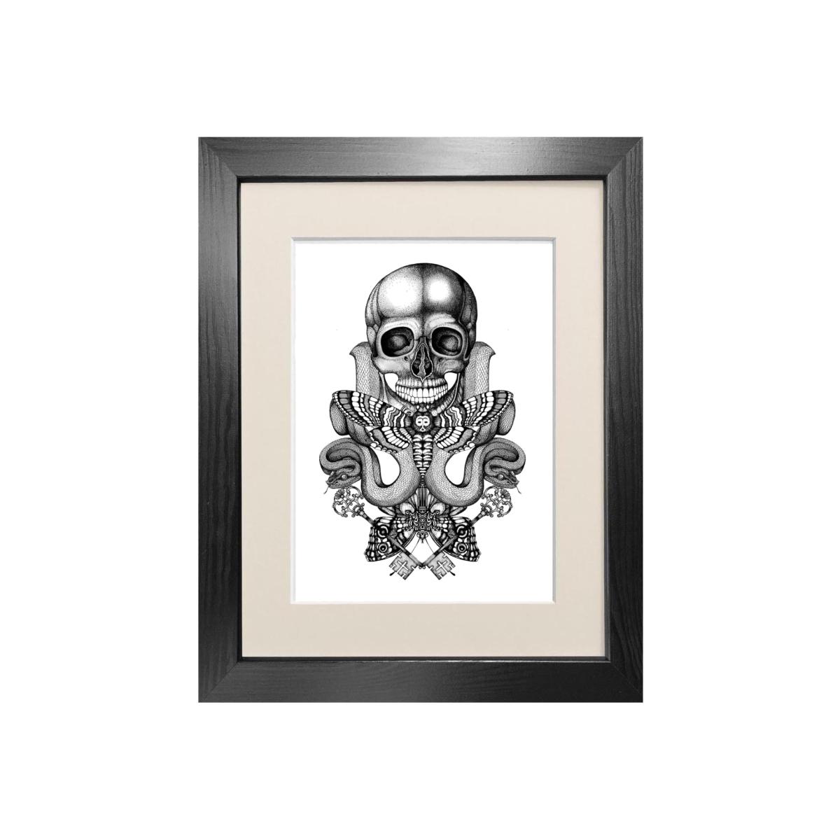 'Death's Head, 2020' Limited edition of 100 Fine Art print on white 250gsm paper Signed and numbered Sold unframed 'Death's Head, 2020' is from the Hybrid series of prints by Emily Carter. Works feature elements of different creatures, creating bizarre hybrids that stretch the imagination. The illustration style invokes technical scientific drawings of the Victorian era which lead the mind to wander where the possible ends and the impossible begins. Fine Art Print on 350gsm paper Signed by the Artist Sold Unframed Printed in London