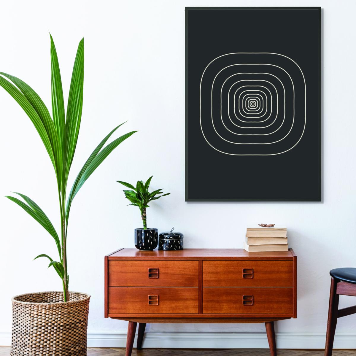 I really like this black depth print for its minimalist yet striking aesthetic. It works particularly well in modern or contemporary interiors, adding visual interest without overwhelming the space. Its bold, graphic design makes it versatile for feature walls in living rooms or bedrooms, especially if paired with neutral or monochrome palettes. A useful styling tip is to layer it with other artworks or decorative elements that echo its monochrome tones for a more curated look. It also lends itself well to prints above a sofa or bed, providing a focal point that’s simple yet impactful.