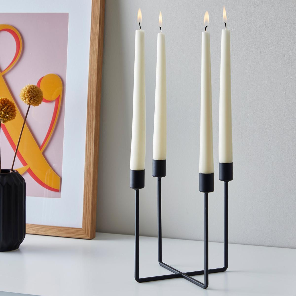I love this black dinner candelabra for its sleek, modern look that works particularly well in contemporary or minimalist interiors. Its matte black finish adds a sophisticated touch and makes it versatile enough to suit both formal dining rooms and more relaxed living spaces. Practical styling tips include pairing it with simple, neutral tableware for a chic tablescape or using it as a statement piece with layered candles for cosy, ambient lighting. It’s also a great pick for creating a striking centrepiece on a sideboard or mantel, especially when combined with greenery or metallic accents to elevate the overall aesthetic.