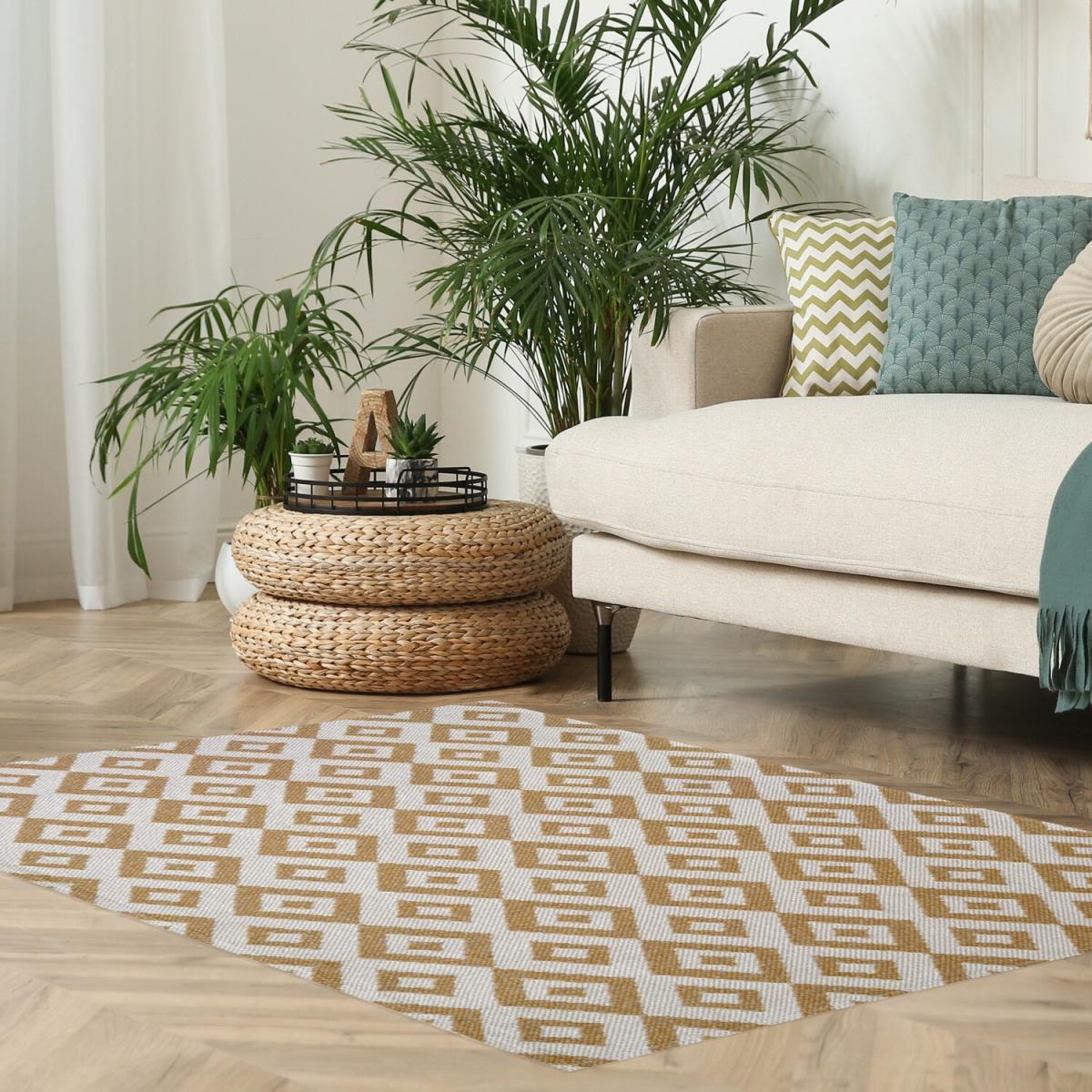I really like this Black Eco Friendly Moroccan flatweave rug because its vibrant yellow adds a lively touch without overpowering a space. It works well in both contemporary and bohemian interiors, especially when paired with neutral furnishings to let the colour pop, or with natural textures for a more layered look. Practical styling tips include layering it under a neutral sofa to create a focal point or using it to define a seating area within an open-plan room. Its flatweave design makes it easy to vacuum and maintain, making it a versatile choice for busy living areas. Overall, it’s a great way to introduce colour and texture while remaining functional.
