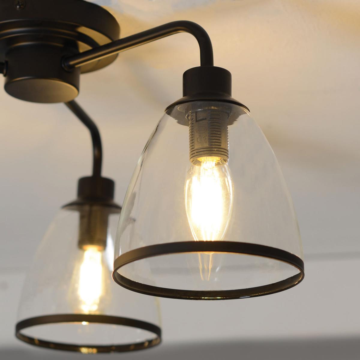 Add an instant contemporary and industrial feel to any dining room or kitchen with the Black Edge 3 Light Ceiling Fitting. The striking three-light design is sure to blend well with bright modern decor. The glass shade will allow light to flood your home with light, perfect for pairing with similarly shaped spaces such as kitchen islands or dining tables. With a stunning black finish, this fixture is also sure to fit lighter, neutral palettes such as whites, blacks and greys.