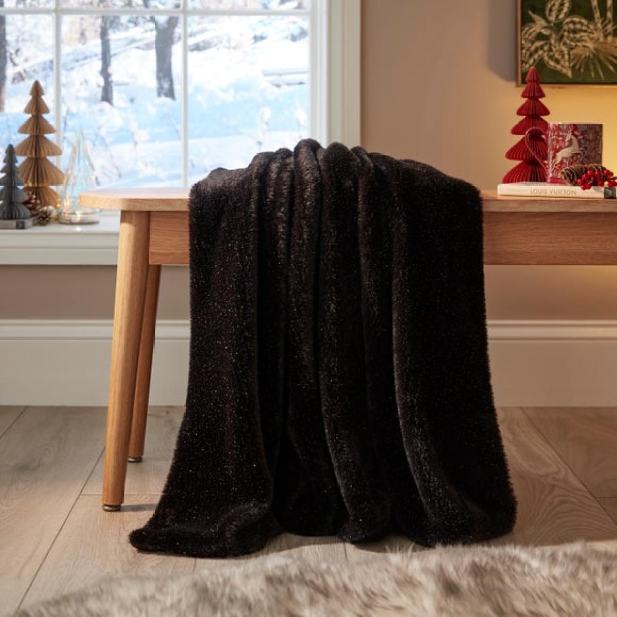This faux fur throw with metallic yarn is a great way to add a touch of luxe texture to your space. I love how the black shade makes it versatile enough for both modern and cosy interiors. It works particularly well layered over neutral sofas or beds to create visual interest without overwhelming the space. For styling tips, try pairing it with velvet cushions or metallic accents to bring out the shimmer of the metallic yarn. It’s also practical - perfect for curling up with on chilly evenings, and because of its rich texture, it instantly elevates the look of any living room or bedroom.