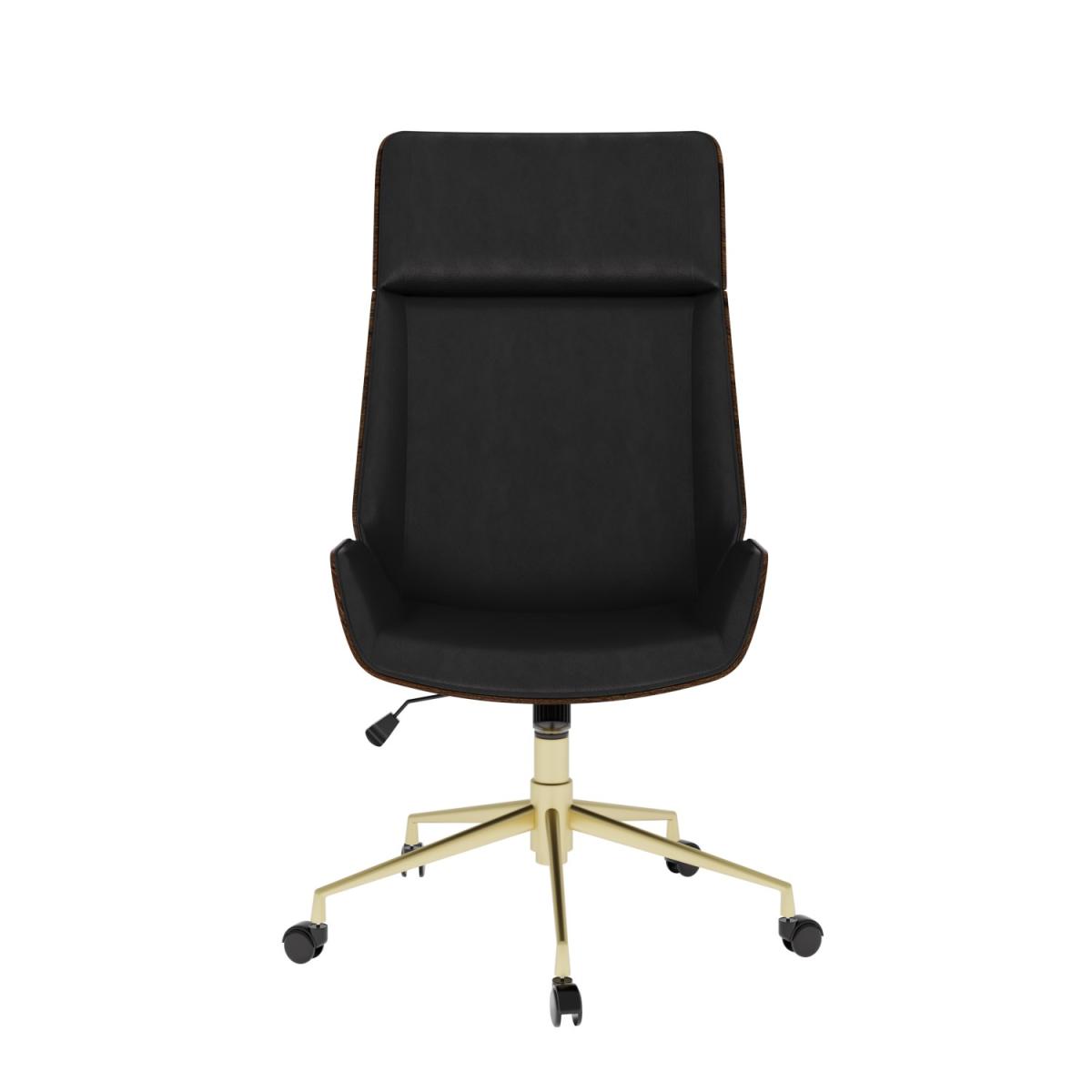 Classic design with sleek faux leather and warm walnut accents adds elegance to any workspace. Features a high backrest and generous foam cushioning for all-day comfort and support. Upholstered in sleek, black faux leather for a sophisticated finish that’s stylish, durable and easy to maintain Effortlessly customise the seat height with a smooth gas lift mechanism for perfect ergonomic comfort. Enjoy full flexibility and easy movement with a 360° rotating seat. Perfect for offices and homes, effortlessly complementing any decor. Bring timeless style and everyday comfort to your workspace with the Forest Swivel Office Chair. Upholstered in sleek, black faux leather with rich walnut accents, it brings timeless style to any office space. The high backrest and ergonomic design offer excellent support and encourage good posture, while the foam-padded seat delivers lasting comfort through long hours at your desk. With adjustable height and a smooth 360° swivel, it delivers adaptable comfort for work and unwinding.