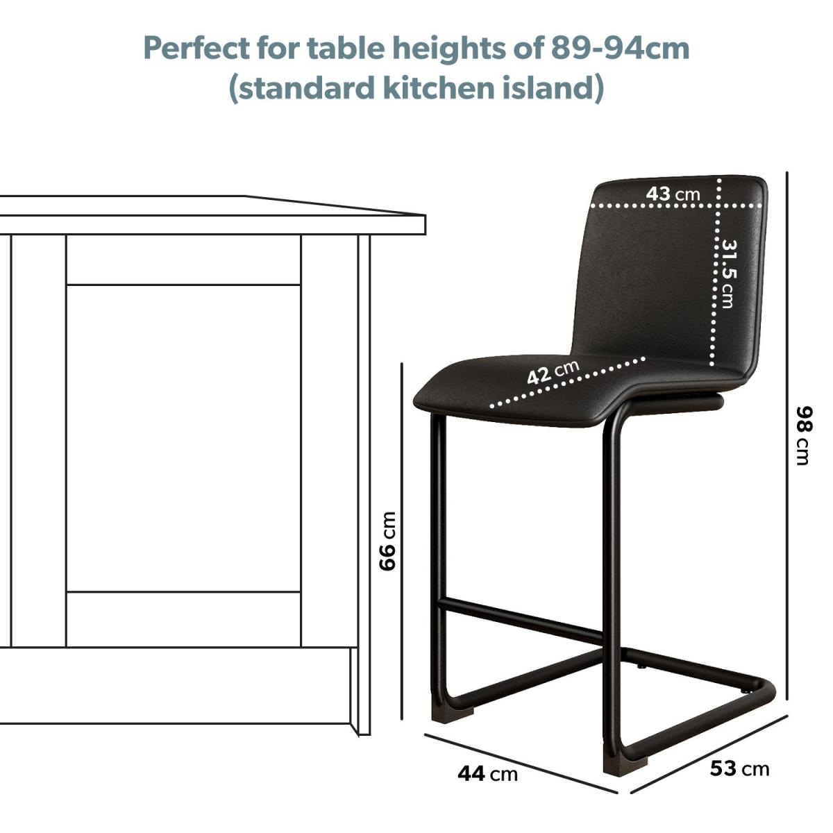 I love the sleek, contemporary vibe of this barstool - the faux leather finish not only looks sophisticated but also offers easy maintenance, making it practical for everyday use. Its minimalist design and clean lines work particularly well in modern kitchens or open-plan living spaces, especially those with monochrome or industrial tones. Styling tips include pairing it with a dark stone or wooden breakfast bar and mixing with metallic accents for a refined look. The 66cm height makes it ideal for standard-height counters, and you can personalise the space further with colourful throws or cushions to soften the look or add personality. Overall, it’s a versatile piece that balances function with style, perfect for contemporary interiors aiming for a polished, understated aesthetic.