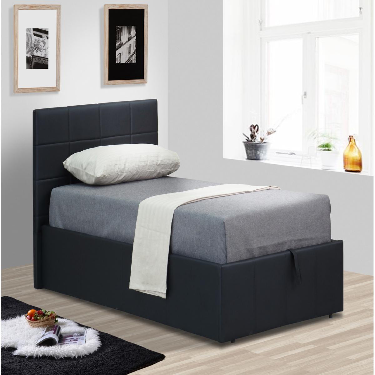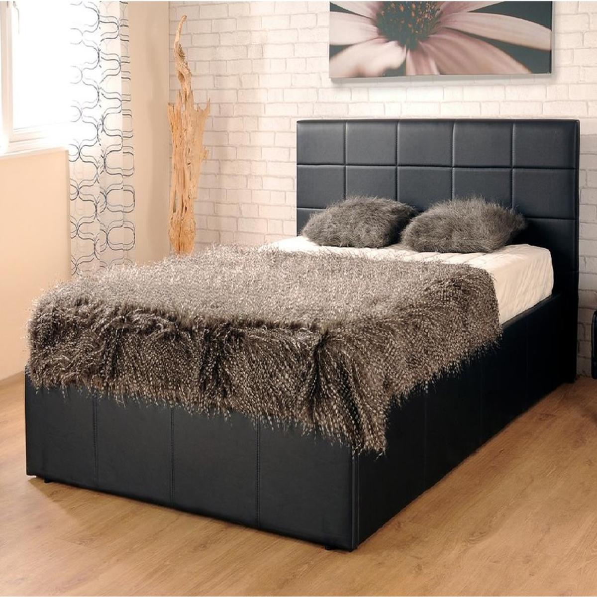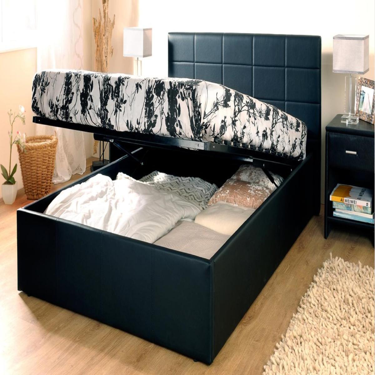 Black Faux Leather Gas Lift Ottoman Bed - Single