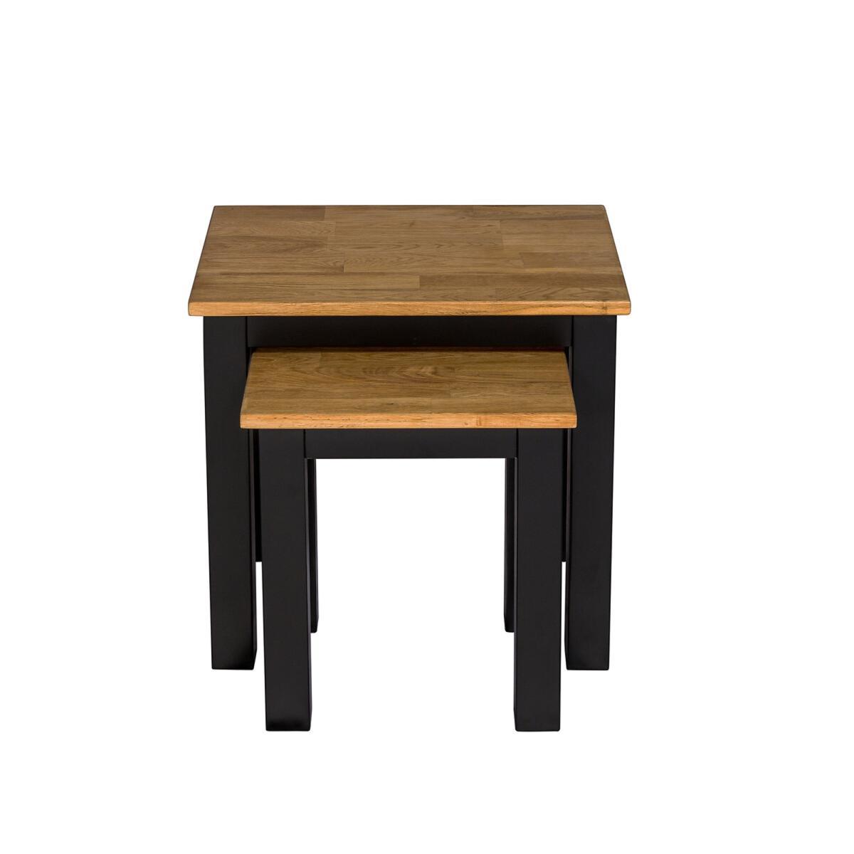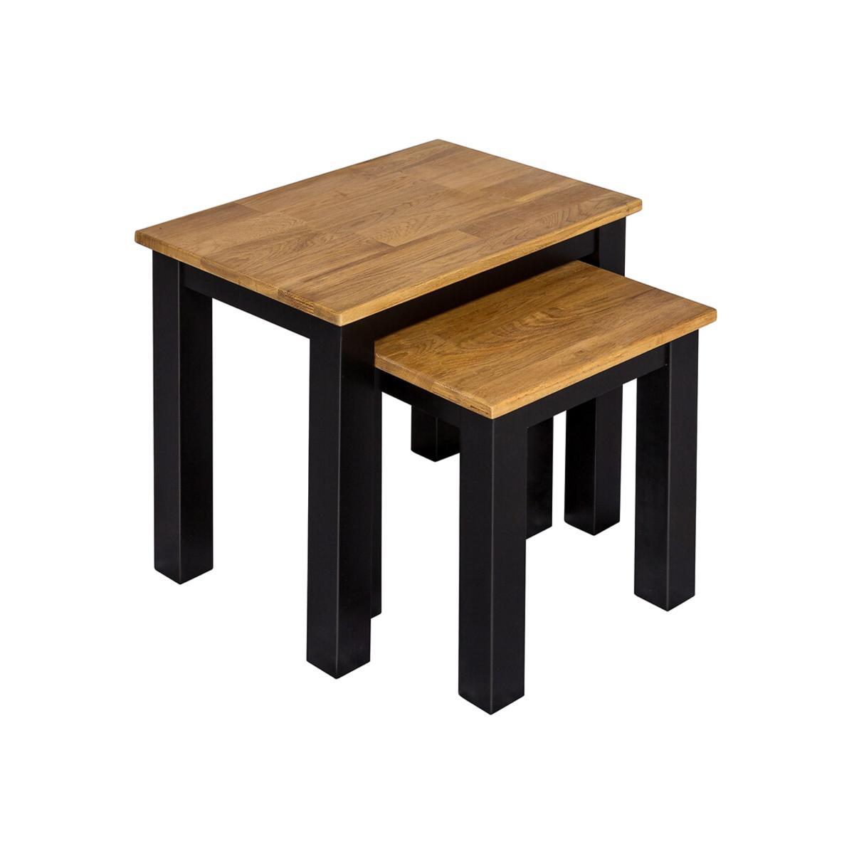 This Nest of Tables is a beautiful item to introduce into any room. Constructed mainly from solid, finger jointed oak, its black painted finish and oiled wood creates striking look. Self Assembly Required. Product Dimensions: 35cmx50cmx48cm. Please remember to measure your available space before ordering Parcel 1 Packaged Dimensions: 58cmx 48cmx 18cm Weight: 12kg. Composition: Solid Oak, Partial Veneer. This product will be dispatched by one of our trusted suppliers. You’ll be contacted by their selected courier about your delivery.