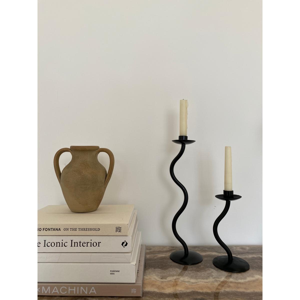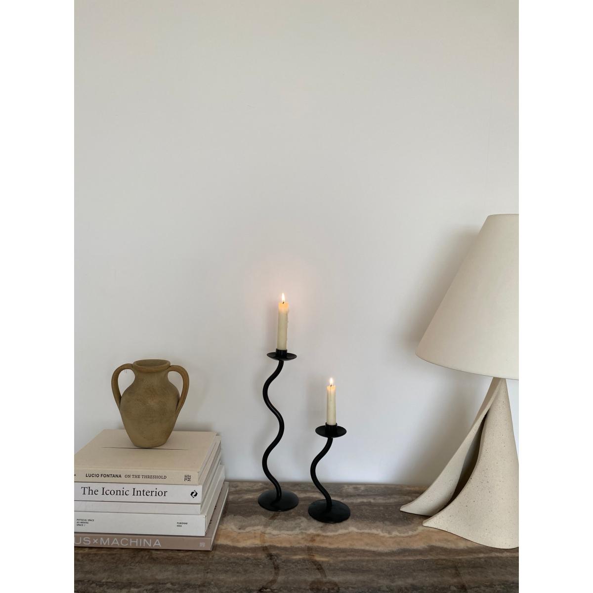 Gehry hand made metal candle holder. Made exclusively in limited quantities using traditional methods. Designed to fit taper candle holders. These are one of a kind metal candleholders. Hand made in the by a metal smith, these candle holders are based on a vintage design. Pieces may have very subtle imperfections because of the manner these are produced. We embrace these as part of the items inherent beauty. By purchasing these you are helping to preserve one of the world's oldest known crafts.