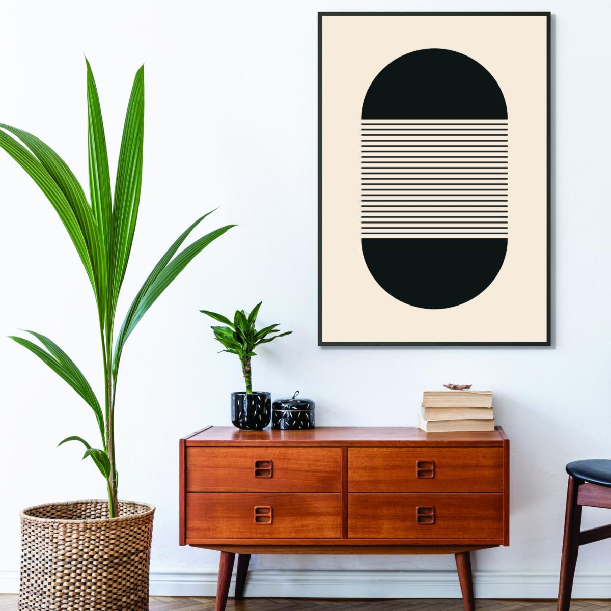 The Black Geometric Vibes #4 Small Stanley Print is a fantastic piece for adding a contemporary edge to modern interiors. I love its bold monochrome palette and clean geometric lines, which make it adaptable to various colour schemes and style options. It works particularly well in minimal, monochrome, or Scandinavian-inspired spaces where its graphic simplicity can stand out without overwhelming. For practical styling, consider pairing it with understated furnishings and let it be the focal point above a sofa, sideboard, or workspace. Framing it in a sleek black or white frame will enhance its modern aesthetic and ensure it integrates seamlessly into a variety of rooms.