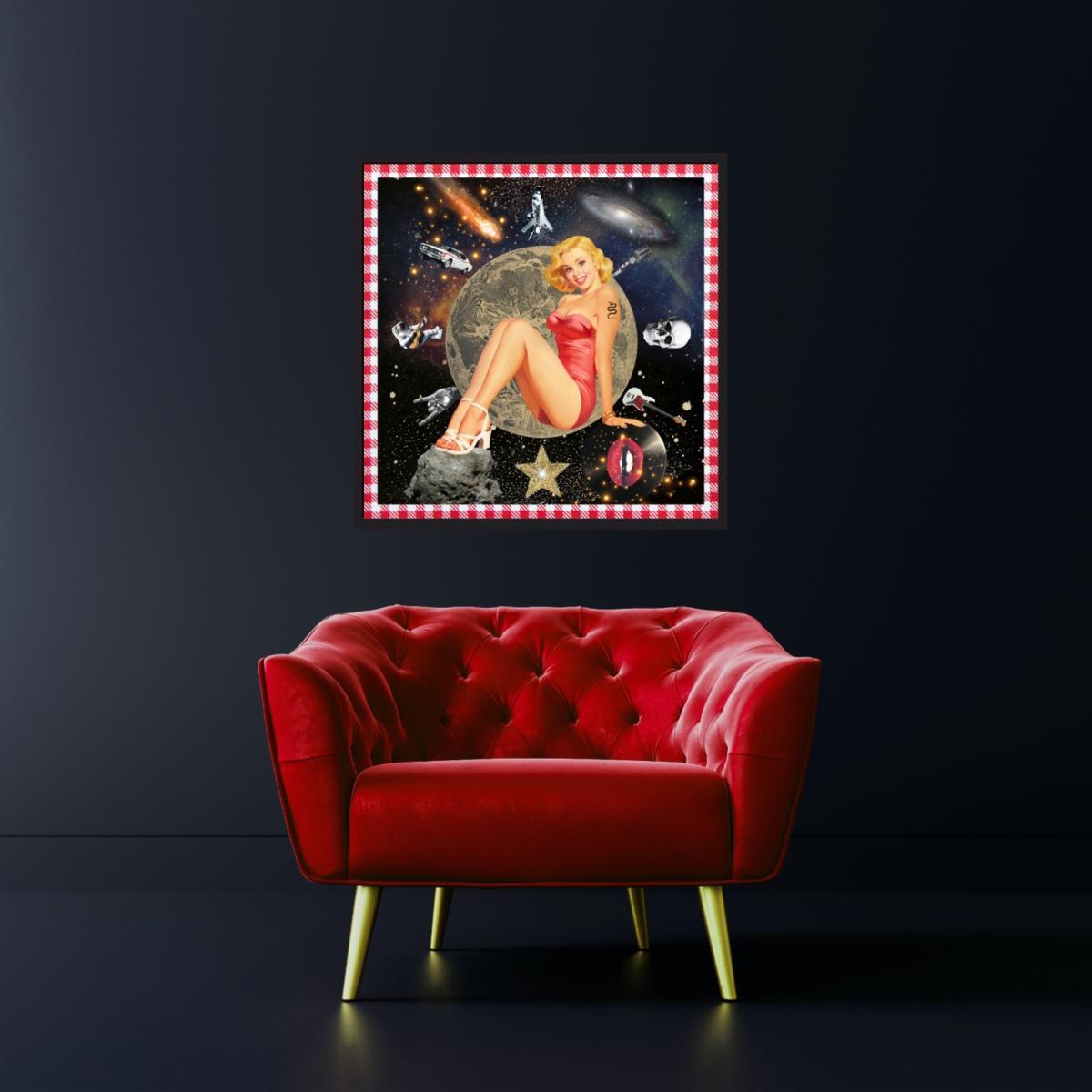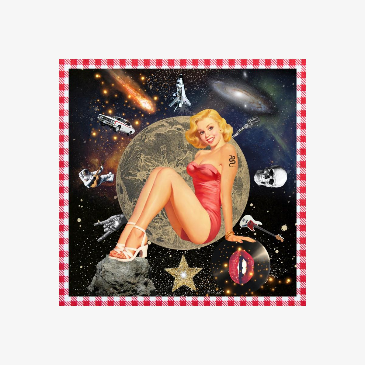 GiGi is a limited edition Fine Art Giclée Archival print on Hahnemühle etching paper. Your signed Limited Edition print of 200 is wrapped with love, and is shipped rolled in a tube, ready to go to your chosen framer. Everyone told Gi Gi she should be a pin-up, but since she was a little girl she only ever wanted to be an astronaut or a rockstar. She was caught between a rock and a hard place. Myrtle & Mary is a luxury art, interiors and fashion brand seeped in a world of imagination. Created with a maximalist mix of vintage and contemporary imagery, pattern and colour, Myrtle & Mary is inspired by the artists family, friends both past and present.