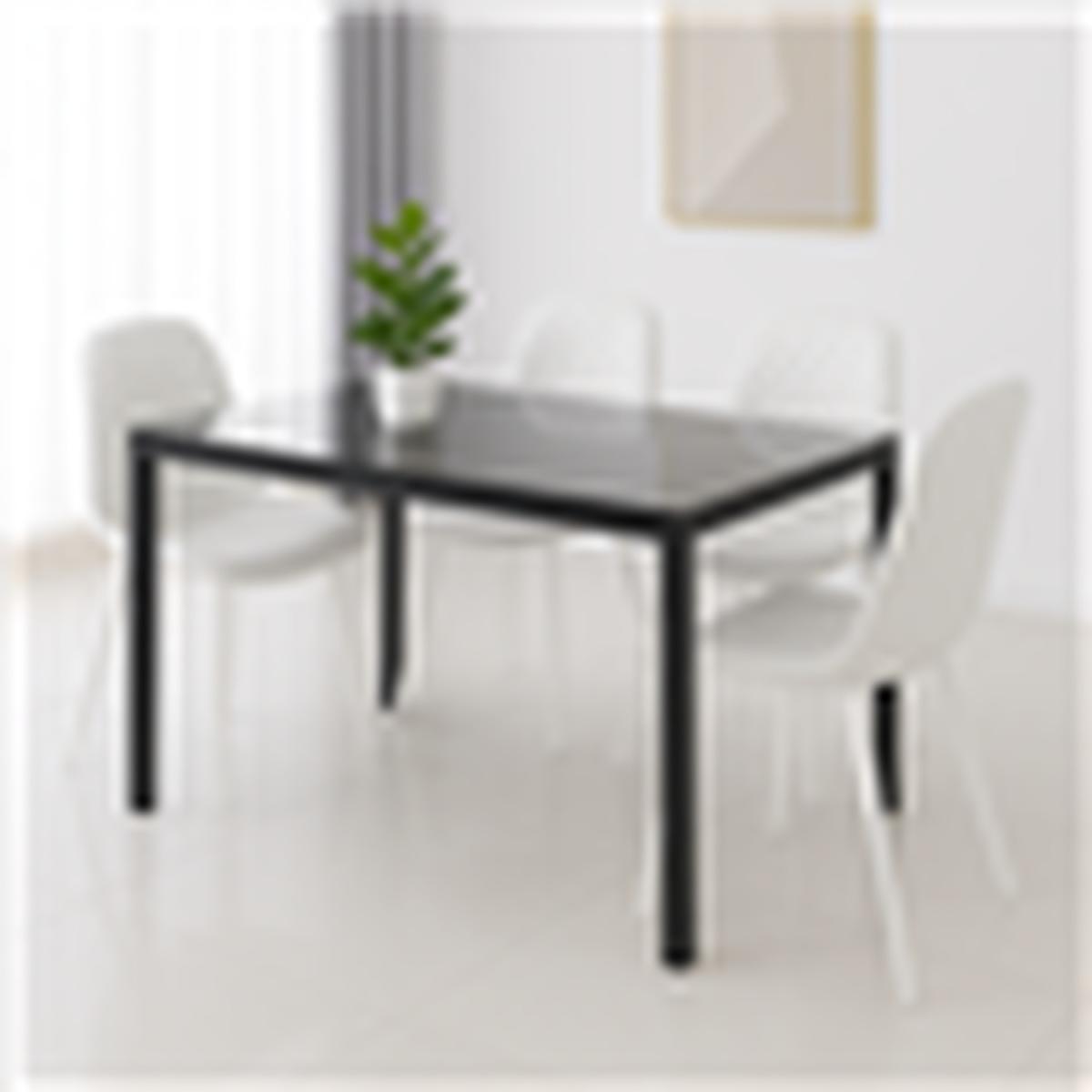 Bring contemporary elegance and comfort to your dining space with the Kosy Koala Dining Set. This beautiful set features a sleek black tempered glass dining table paired with four stylish white gem patterned chairs, making it a perfect addition to modern homes and restaurants. The dining table is made from 8mm high quality black tempered glass with strong metal legs, ensuring durability and stability. Rubber feet at the base protect your floors while providing balance. The chairs are upholstered in premium faux leather with a diamond gem pattern on both the front and back, giving them a luxurious look from every angle. Their slightly curved backs and padded seats offer excellent comfort and support, while the armless design enhances space and adds a modern touch. Features Includes one black tempered glass dining table and four white gem patterned faux leather chairs. Table made from 8mm thick high quality black tempered glass with strong metal legs for stability and durability. Chairs upholstered in premium faux leather with diamond gem stitching on both sides. Slightly curved backrests and padded seats provide superior comfort and ergonomic support. Armless chair design creates a sleek, modern appearance. Suitable for dining rooms, kitchens, cafes, and restaurants. Dimensions Table H75 , L134 , W70 cm Chair H85 , L52 , W44 cm Seat height 44 cm