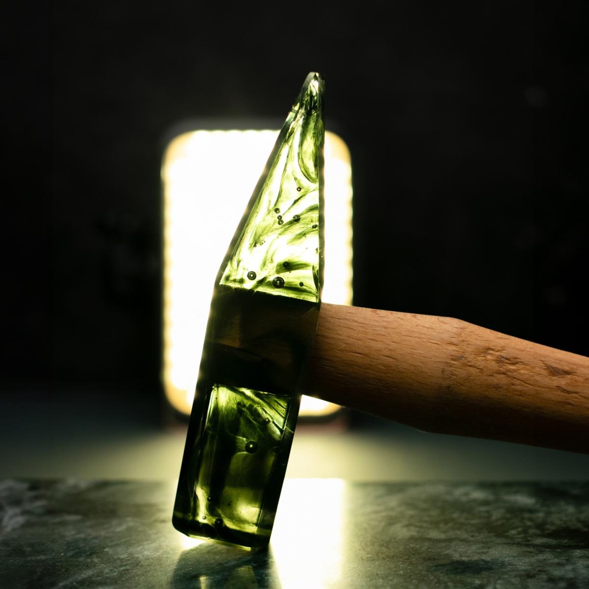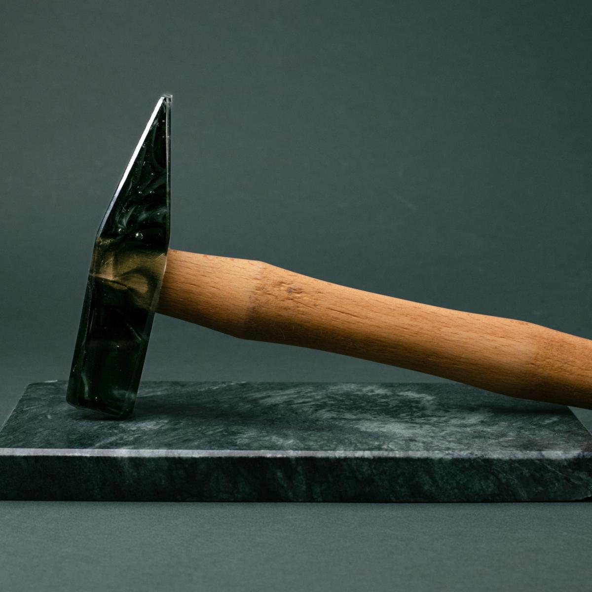 Discover the redesigned classic tack hammer model, now transformed into a stunning glass object. This unique and original gift idea is sure to captivate. It is a three-dimensional glass replica of the tack hammer.