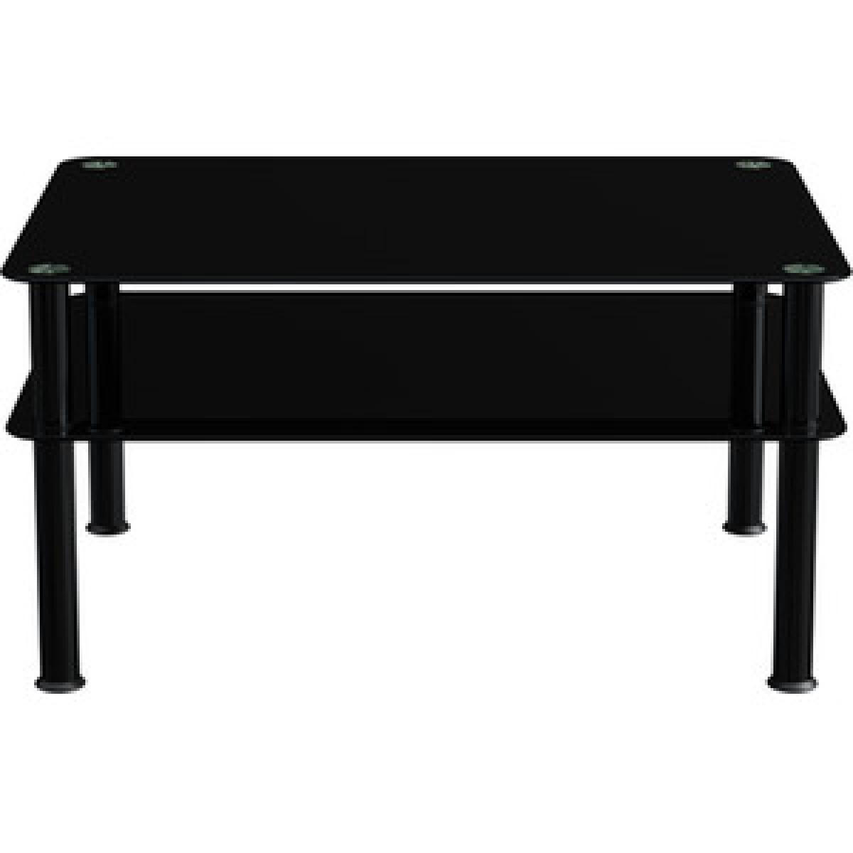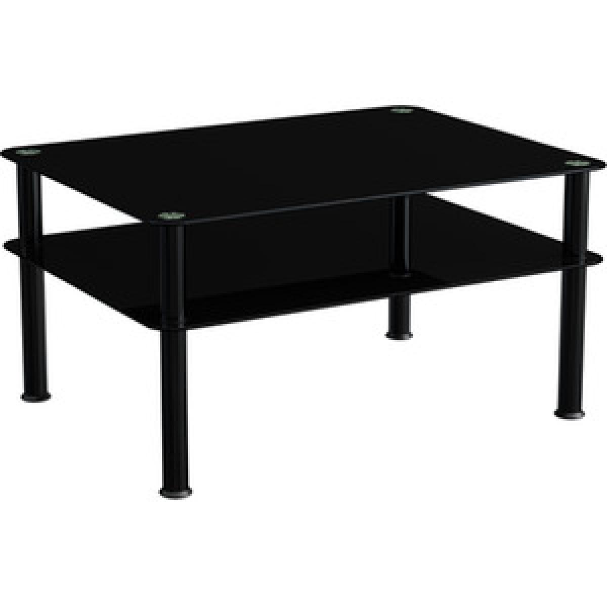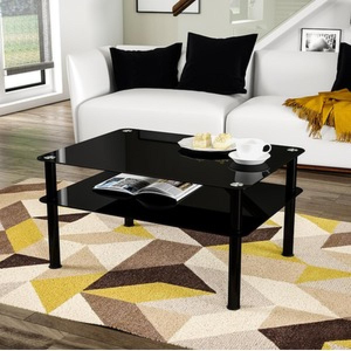 I’m a fan of this black glass coffee table for its sleek profile and practical lower shelf, which makes it ideal in contemporary or minimalist schemes. The dark, reflective top brings contrast against light-coloured sofas and rugs, while the metal legs give a subtle industrial edge. To style it, keep clutter to a minimum: a small stack of books, a sculptural vase in a neutral tone and a trailing plant add interest without overwhelming the surface. In cosier settings you might layer a textured tray to group candles or coasters, making the table both attractive and functional.