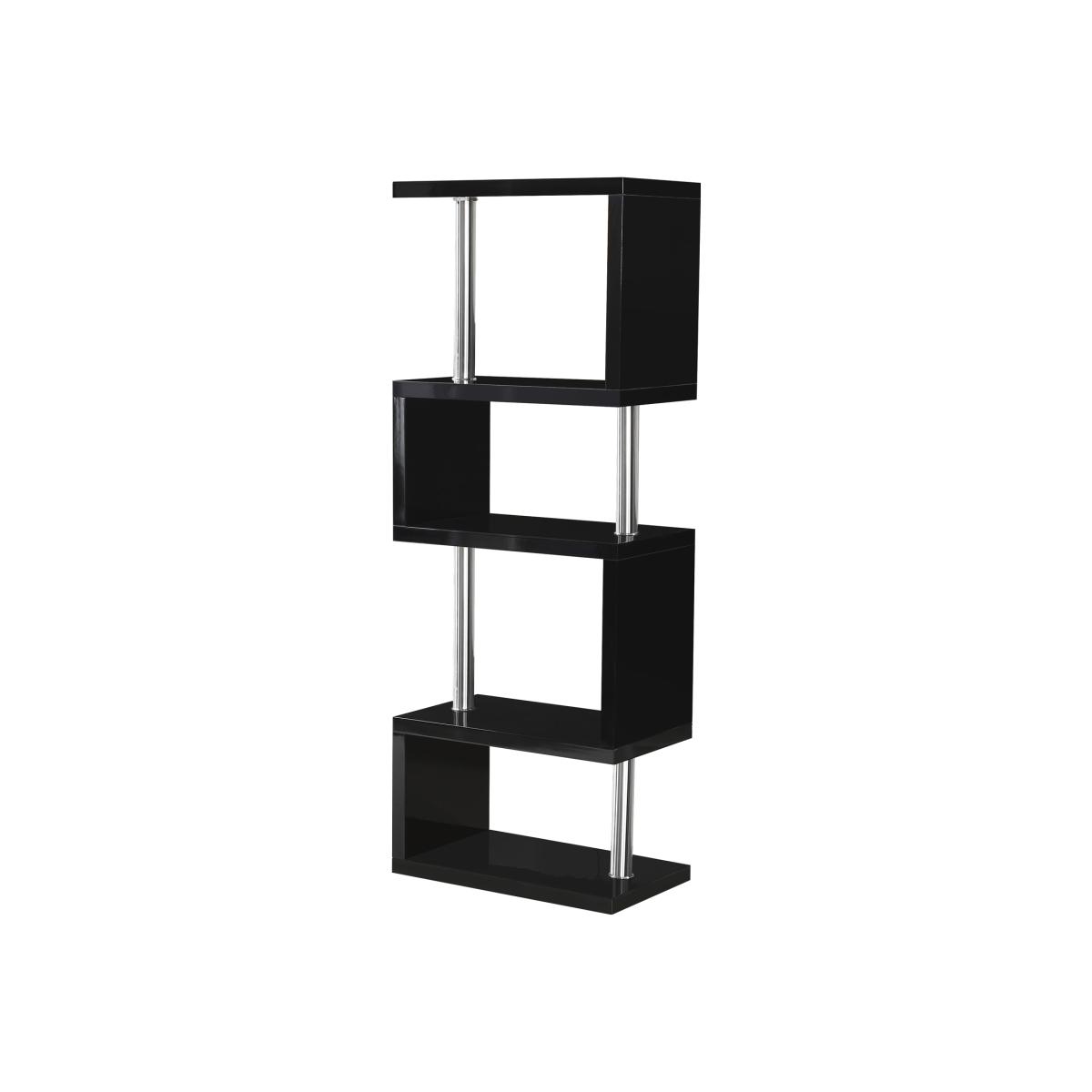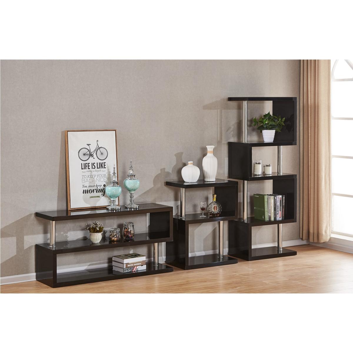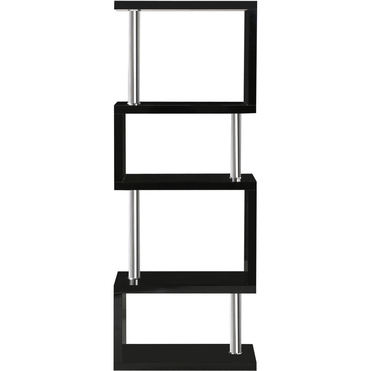 Dimensions W60cm x D35cm x H160cm Features. Modern 5 shelf unit. Black high gloss finish. Attractive chrome tubing. Ideal for displaying ornaments. Assembly required..