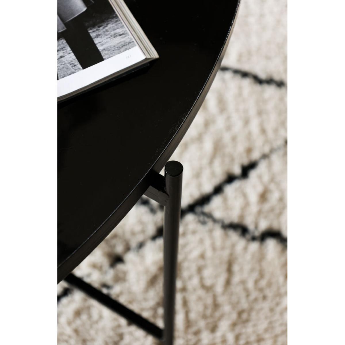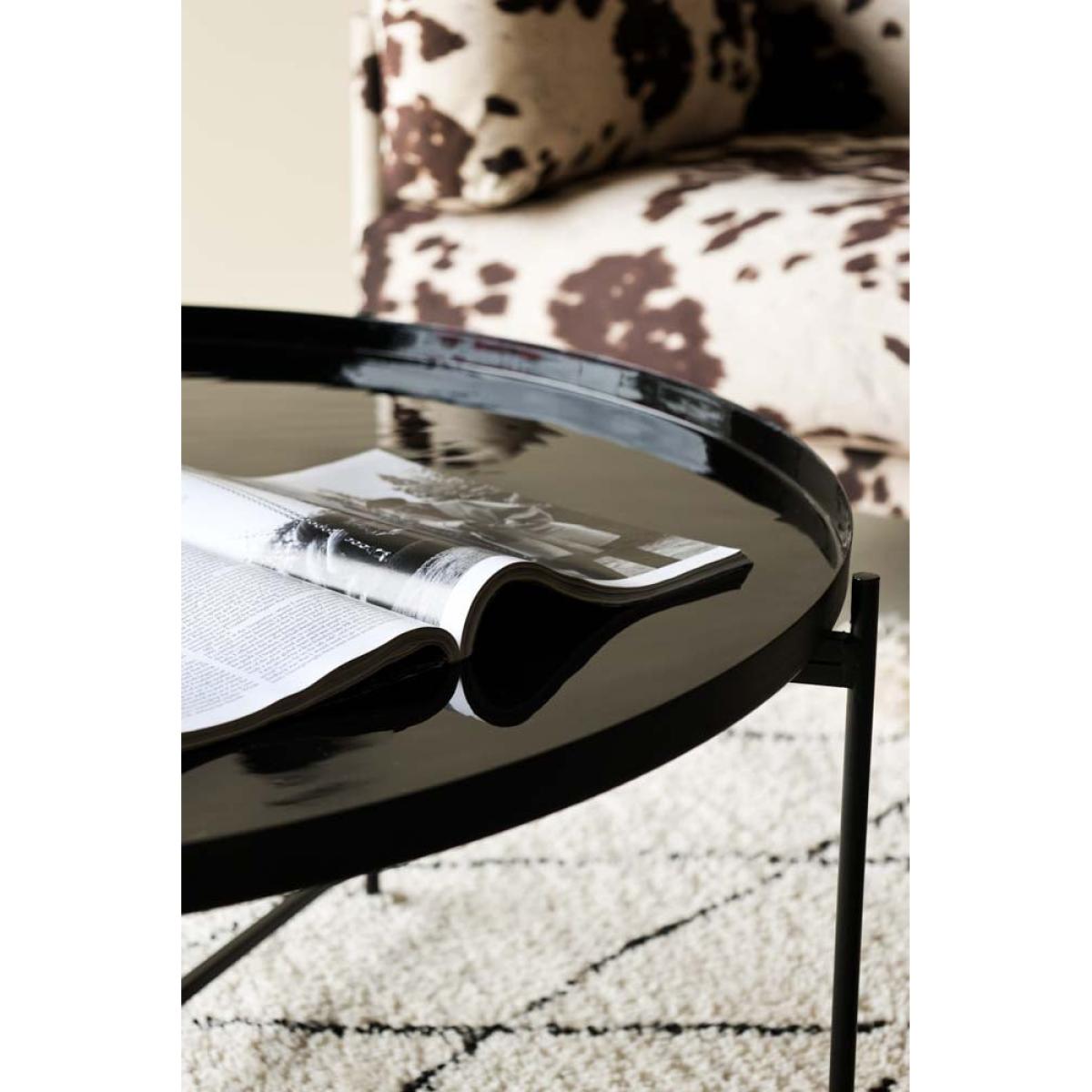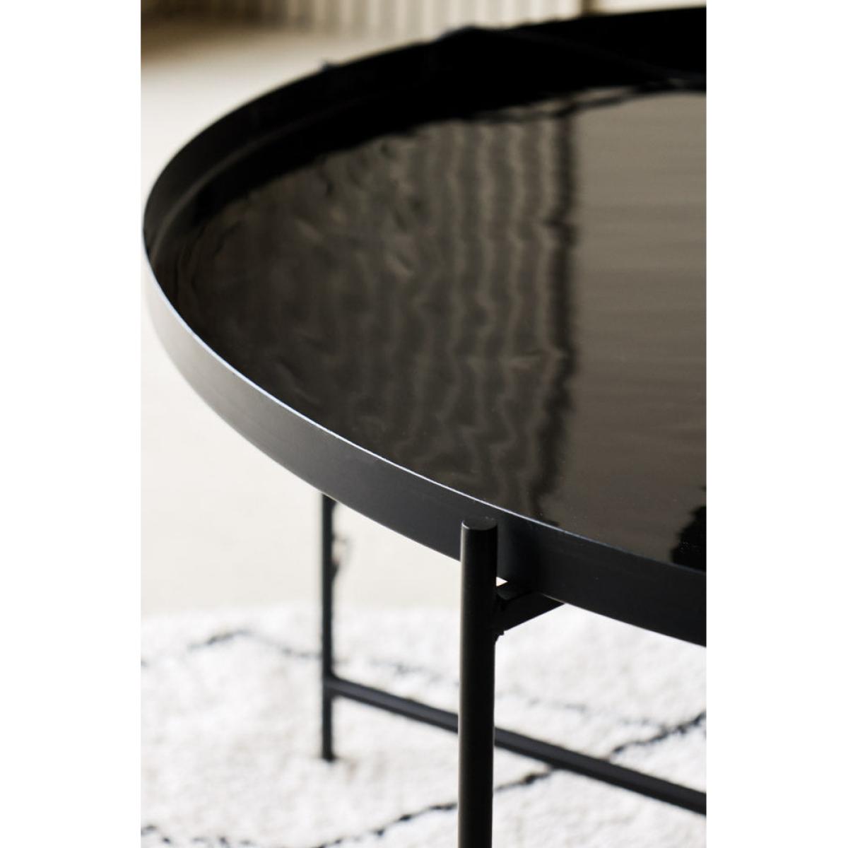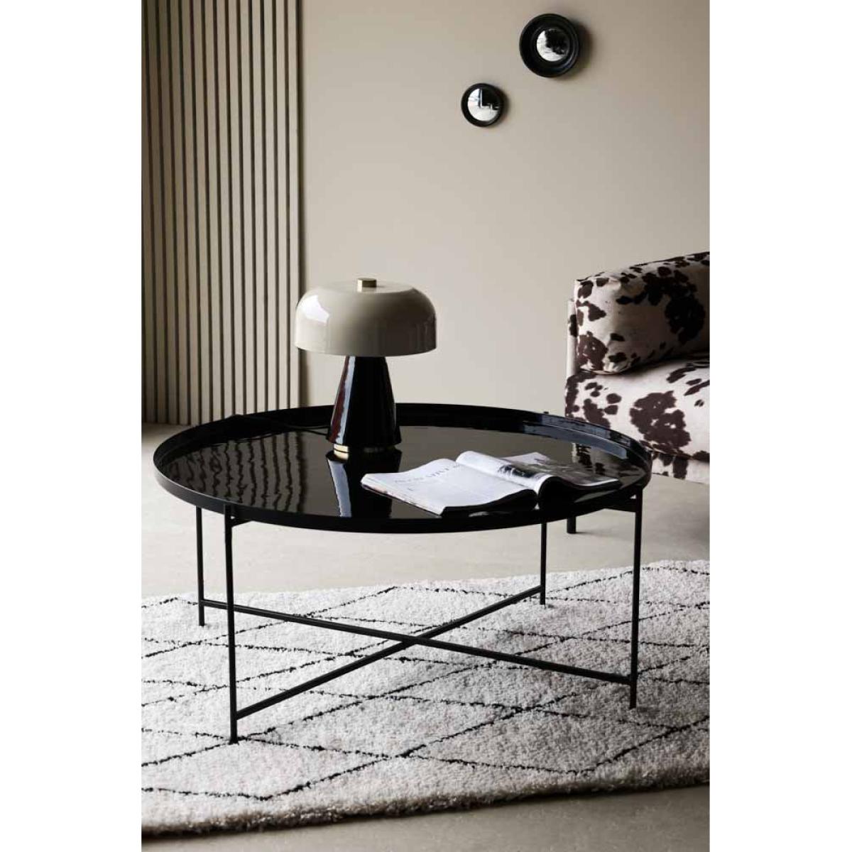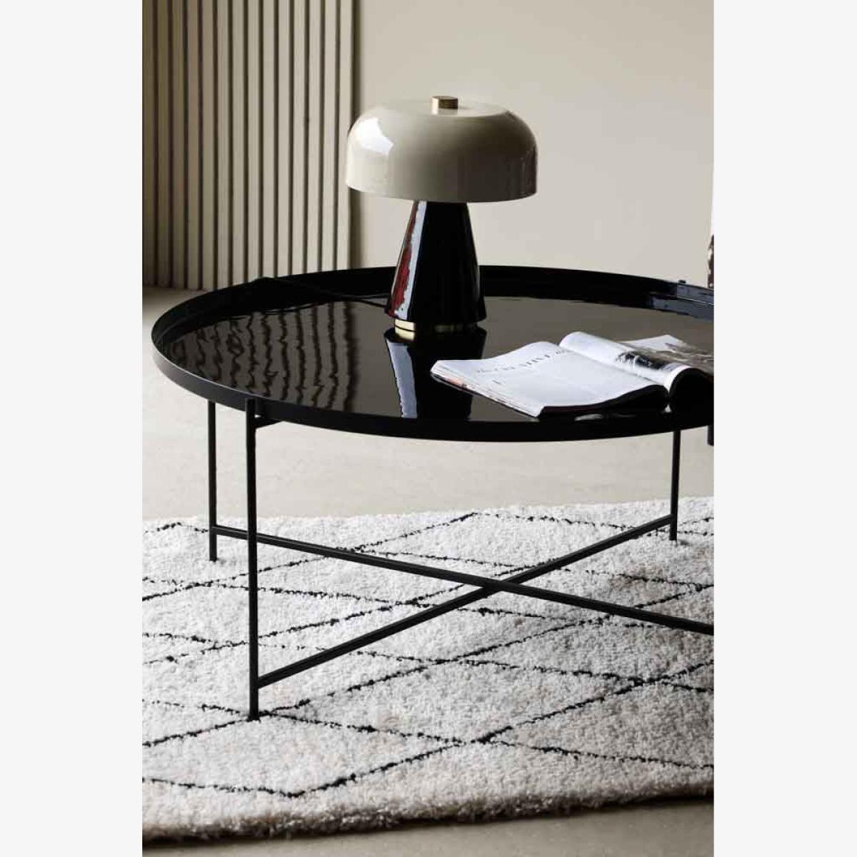 Supersize your coffee table styling with the Black Gloss Tray Coffee Table. Celebrating the power of simplicity, this large coffee table is the perfect blank canvas for curating a statement style spot. Pile up candles, vases, interior books, magazines, shells, crystals and anything else you love for full, maximalist impact. From the clean lines of the coffee table tray design to the modern metal base and bold gloss finish, this is a black coffee table unlike any other. A hero piece for larger living spaces or open-plan rooms where regular furniture often gets lost - in this case, bigger really is better! - Large coffee table - Black gloss enamel tray top and metal base - Measures: H47cm x Dia. 103cm - Please note that as a large coffee table, we recommend checking the dimensions in your room carefully.