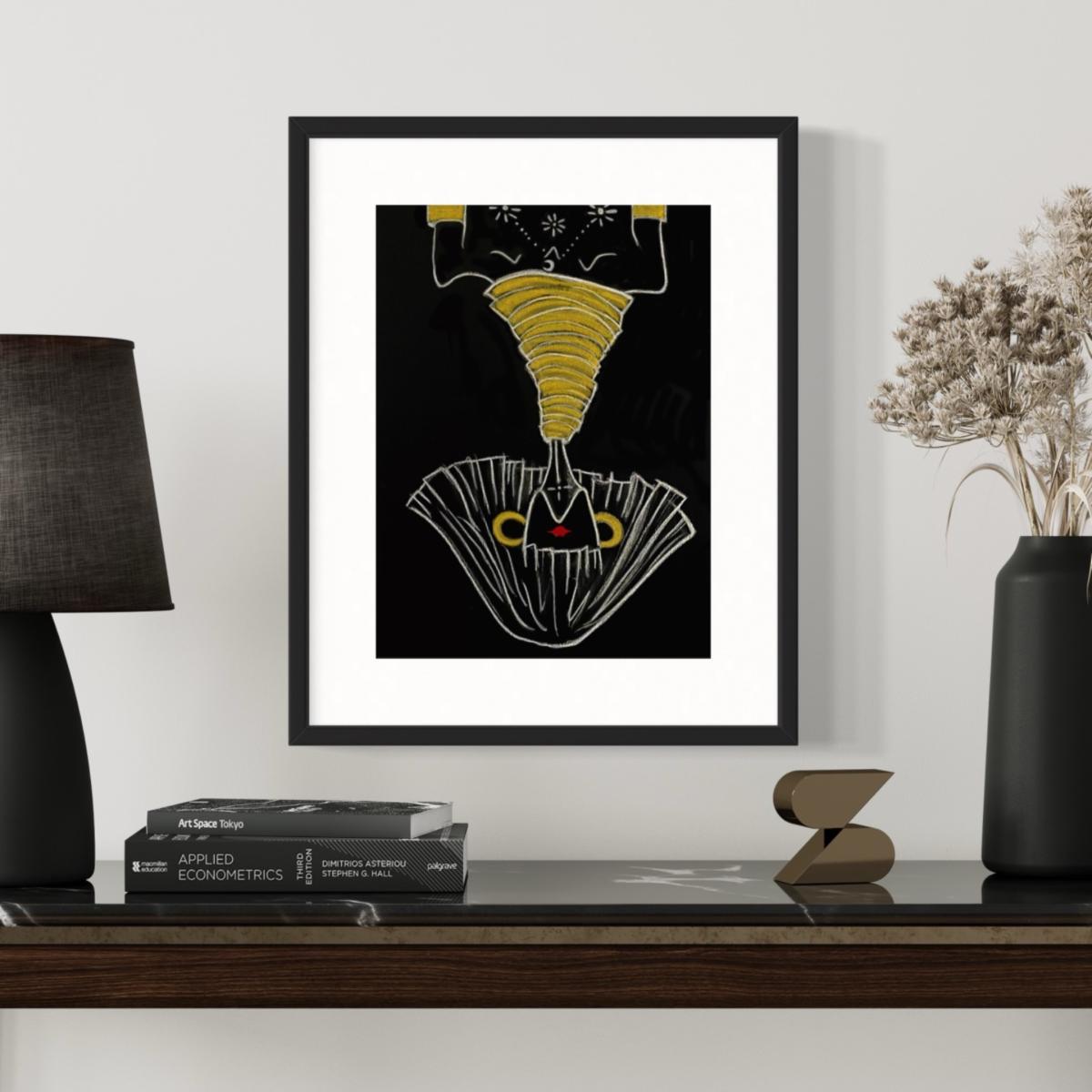 This Artwork is inspired by a Goddess of the Moon, dark mystical and a light so bright it turns the dark into light, this is a printed version of the Original Artwork. This piece is printed on A4 and is a printed version on high quality matte Artist paper 240gm and can be framed for an even more unique effect. There is limited quantities available and each print off is hand signed by myself.