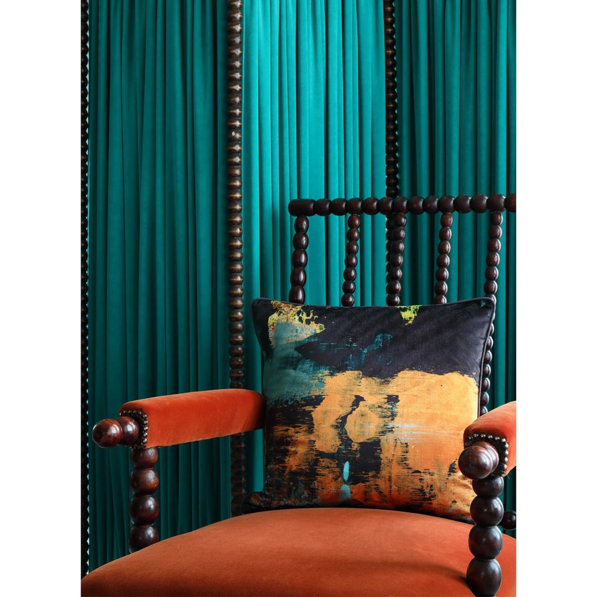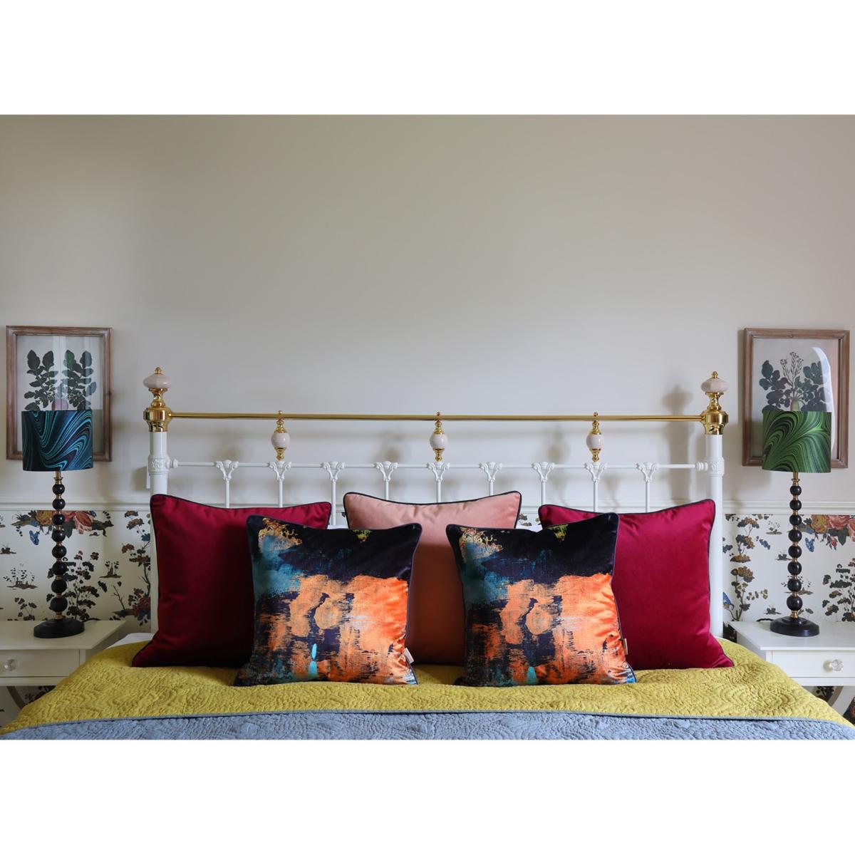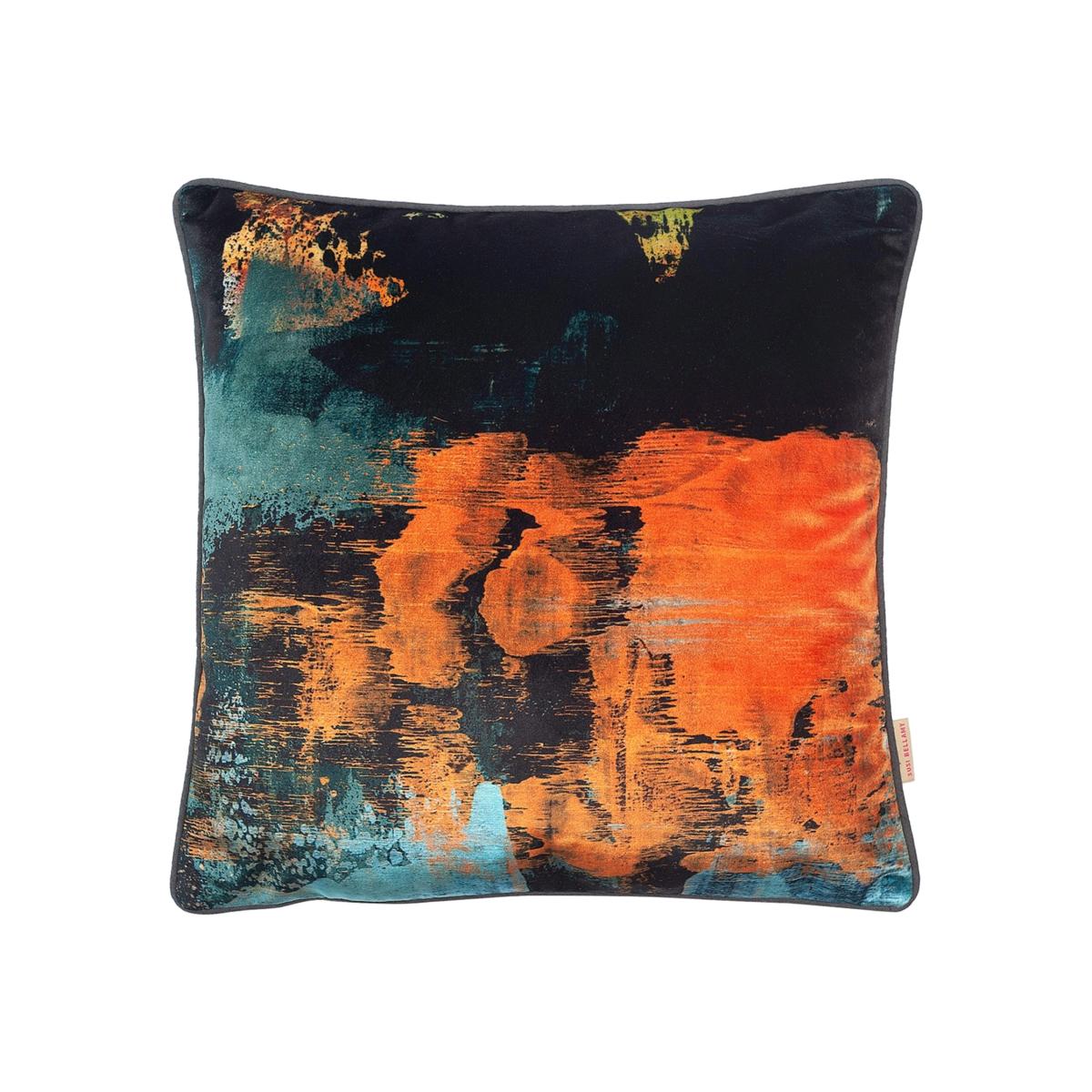 This atmospheric design is based on one of Susi's latest landscape inspired abstract paintings, focusing on her mark making and paint strokes, perfect to add a unique and artistic style to your interior. This cushion is piped and backed with lovely jet coloured cotton. Striving for sustainability and keeping our carbon footprint at a minimum, our cushions are printed in the UK and made by our local artisan makers before being packed up in recycled and recyclable packaging. The inserted cushion pads are made in Norfolk and their duck feathers are ethically and sustainably sourced.