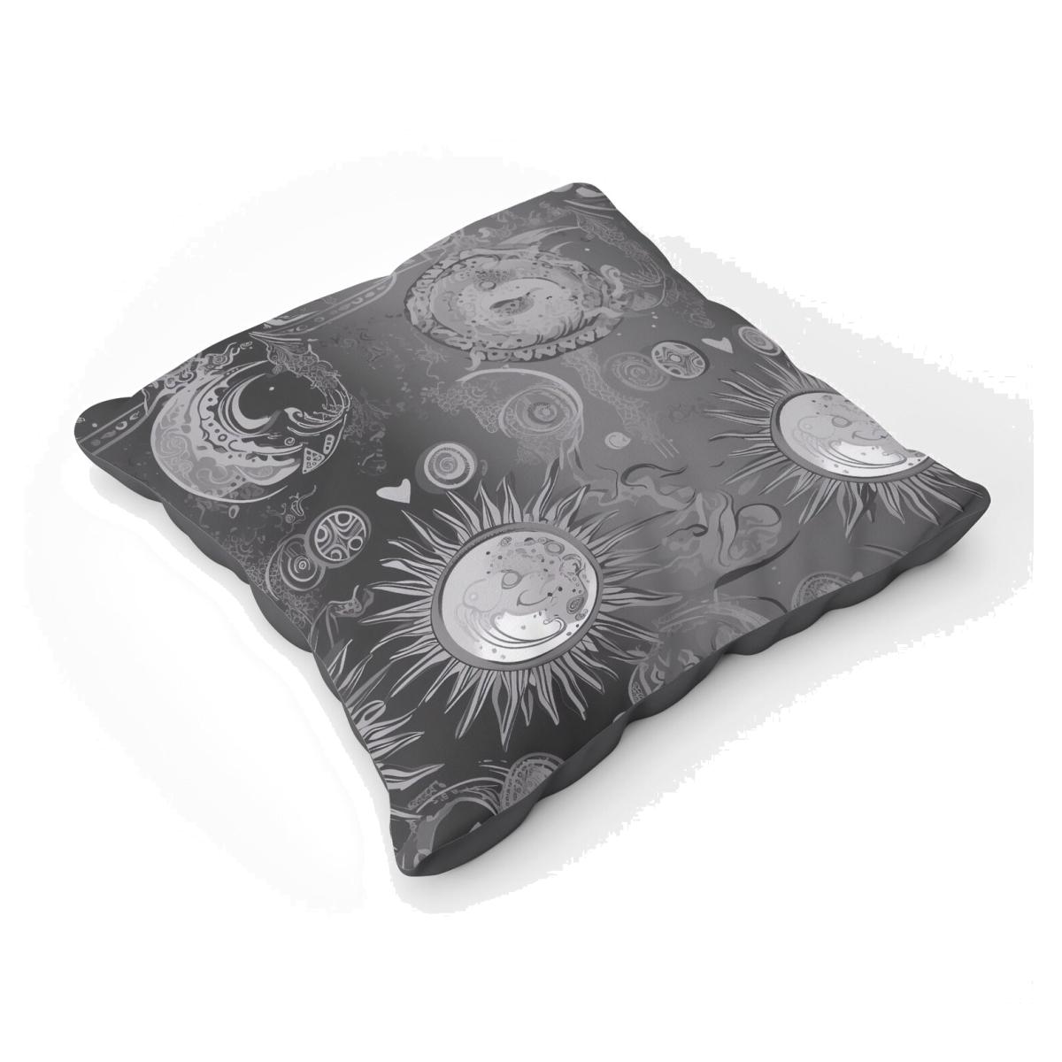 Black Grey Abstract Sun and Moon Floor Cushion - Grey