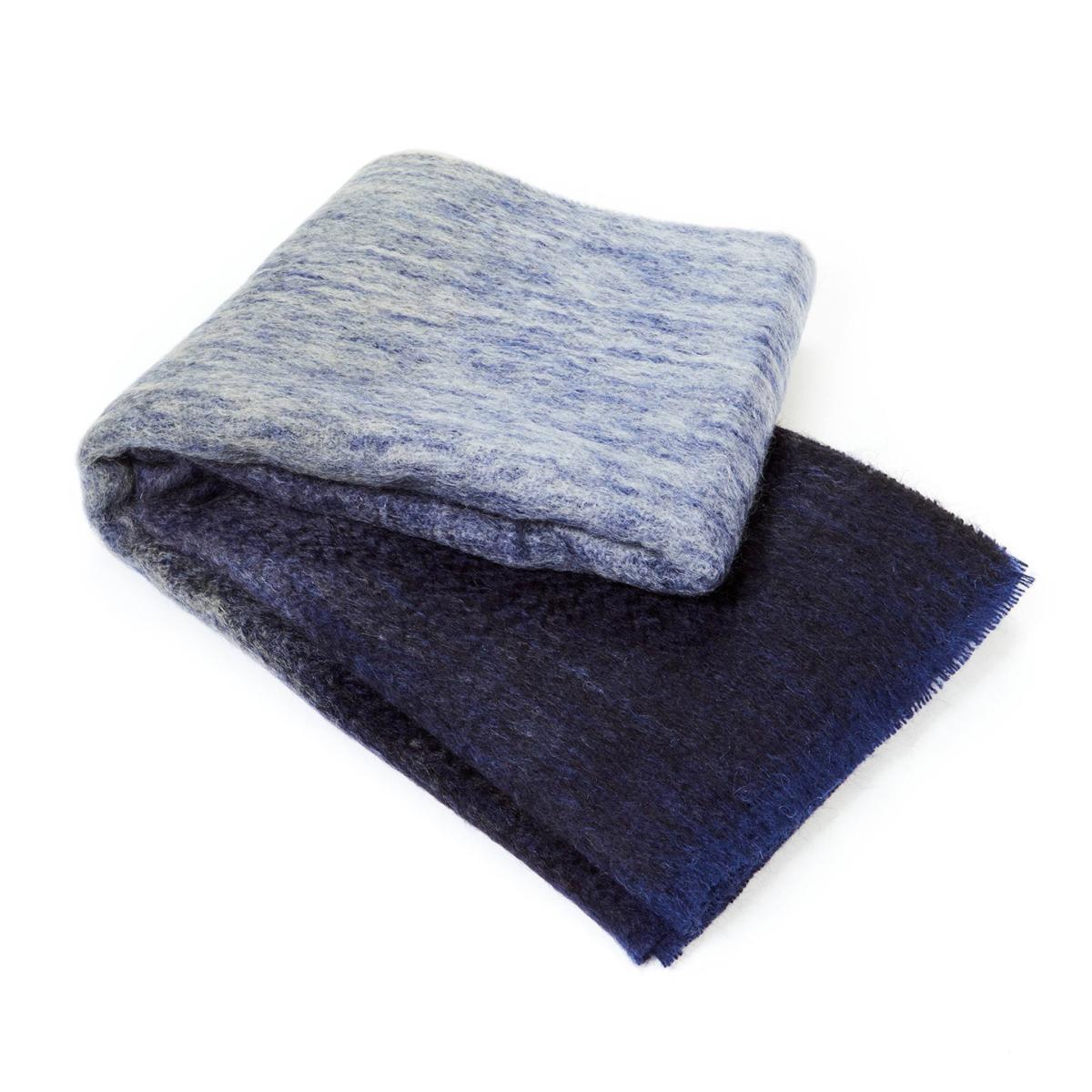 Large Mohair throw perfect for dressing a bedroom, living room or study. The shaded throw in jet is made from a blend of fine mohair and pure new wool, sourced and spun in Scotland, in an ombre design. Our special drawn finish creates exceptional warmth and lustre.