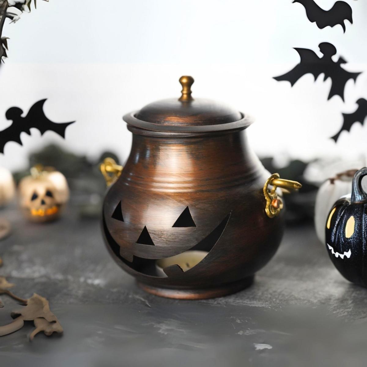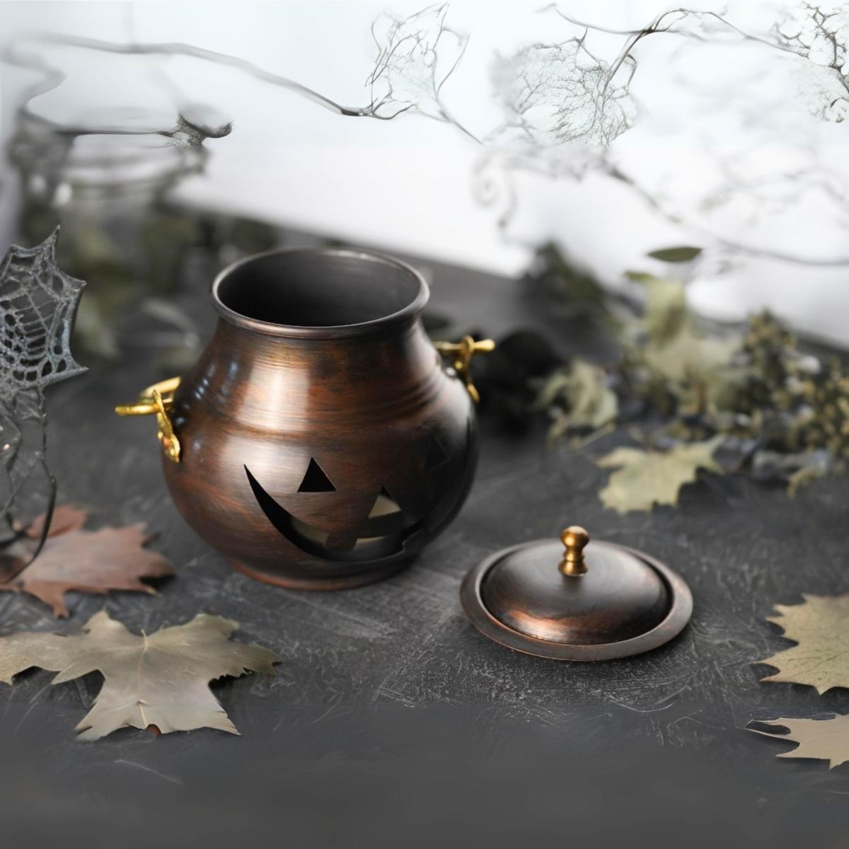 Embrace the spirit of Halloween with our Handcrafted Dark Oxidized Copper Pumpkin Decor. This striking piece features a rich, dark oxidized copper finish that exudes elegance while capturing the essence of autumn. Perfect as a sophisticated Halloween accent, the unique pumpkin design brings a touch of festive charm to your home. The attached hanger allows you to effortlessly display it in any space, making it an eye-catching ornament that will enhance your Halloween decor and remain a stylish piece throughout the season.