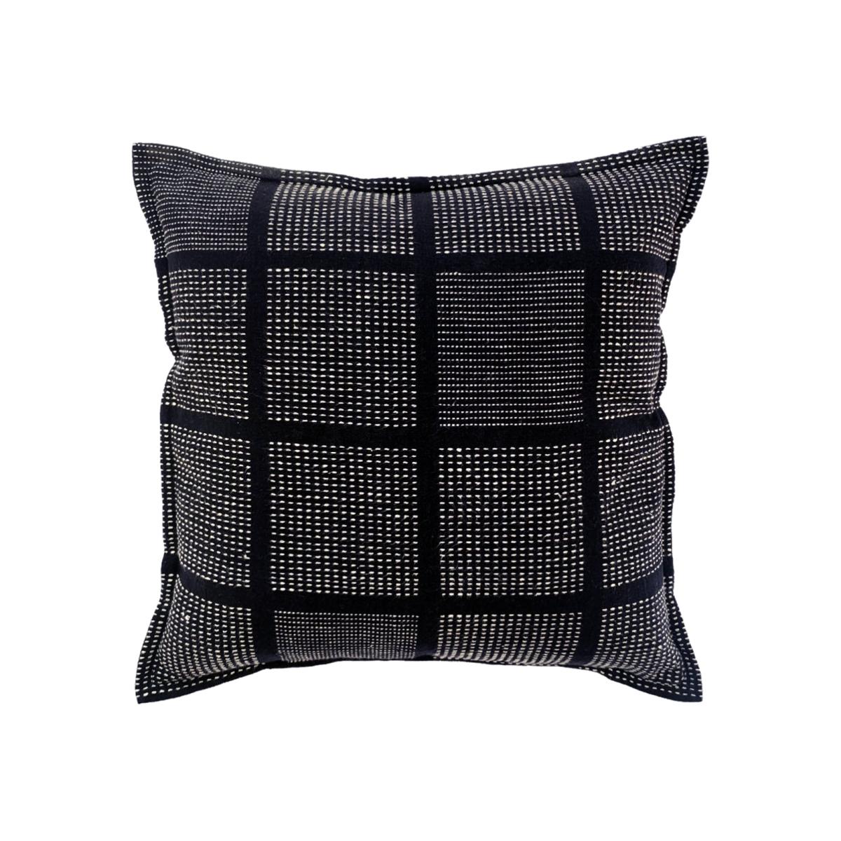 Black Handloom Cotton Cushion Cover 40 X 40 Cm Small Woven