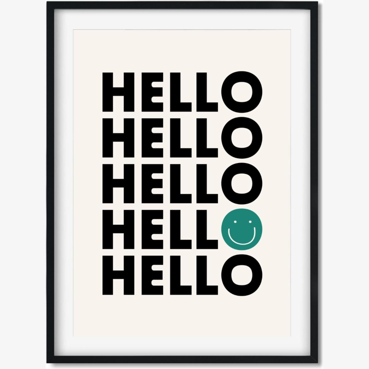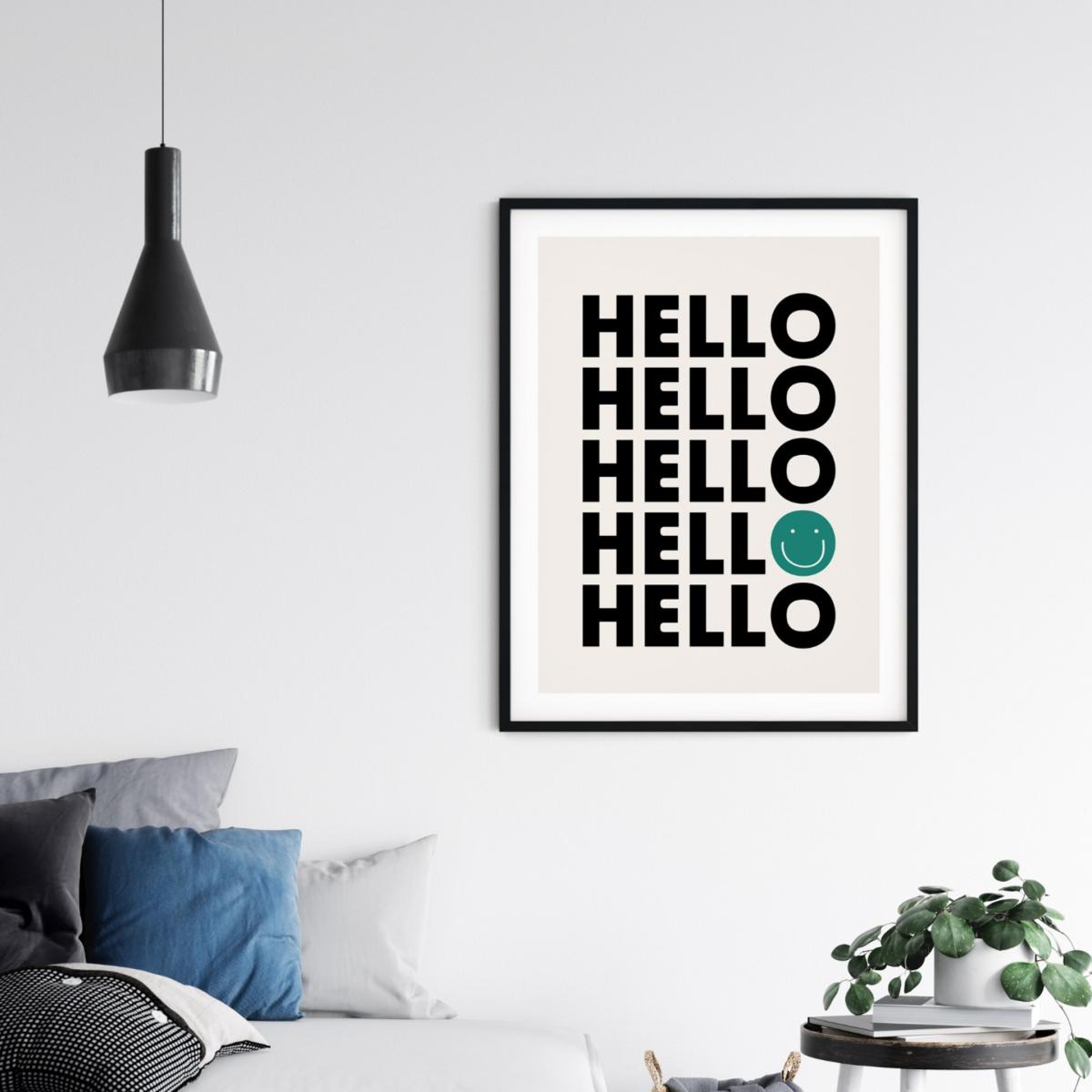 Hi, hey, hello! With a fun, minimal, design – hang this print for all to see! Sold unframed. Printed on thick, museum-quality paper (250gsm) with high-quality ink to prevent fading.