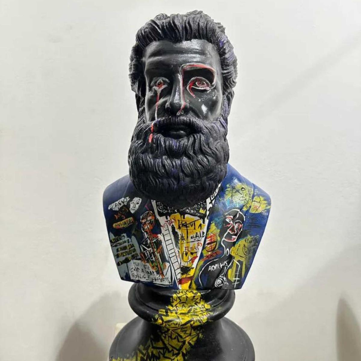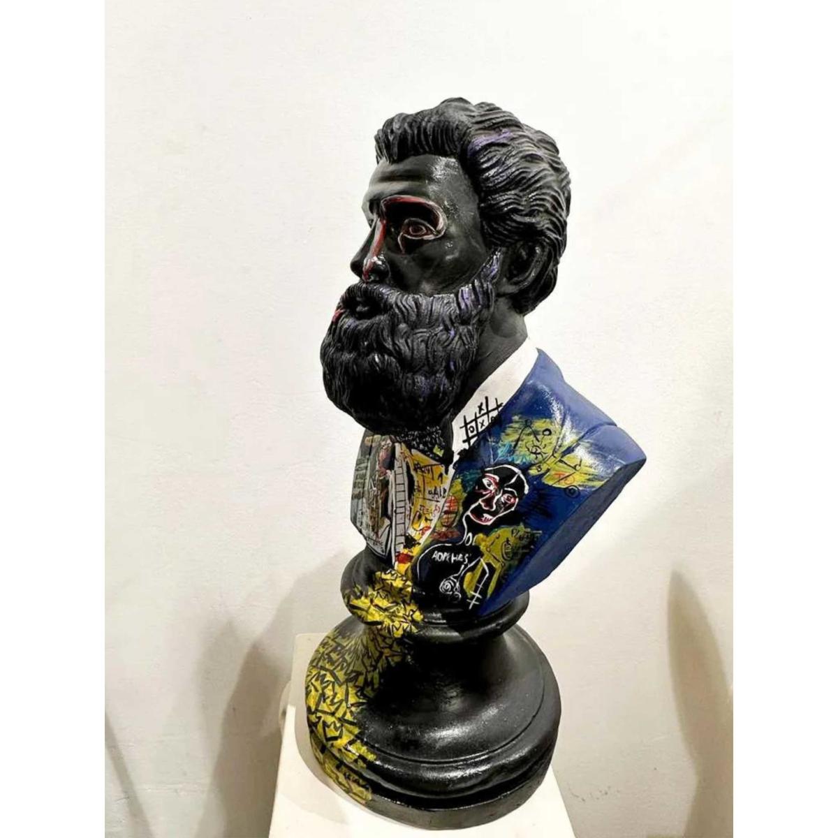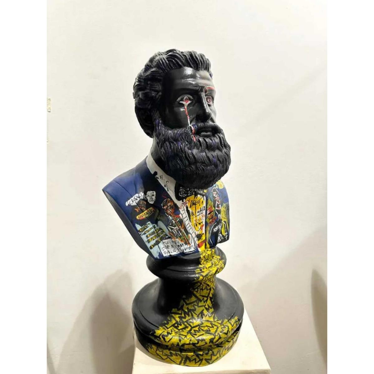 Introducing the Hercule & Bond Basquiat sculpture, a captivating masterpiece that stands at an impressive 53 x 25 x 25 cm. This unique art piece seamlessly marries strength and sophistication, bringing the iconic style of Hercule & Bond into your space. Crafted with meticulous attention to detail, the Basquiat sculpture pays homage to the renowned artist's distinctive aesthetic. The 53-centimeter height commands attention, while the 25 x 25 cm dimensions provide a balanced and harmonious form. The sculpture captures the essence of the Hercule & Bond brand, blending artistry and luxury in a harmonious fusion.