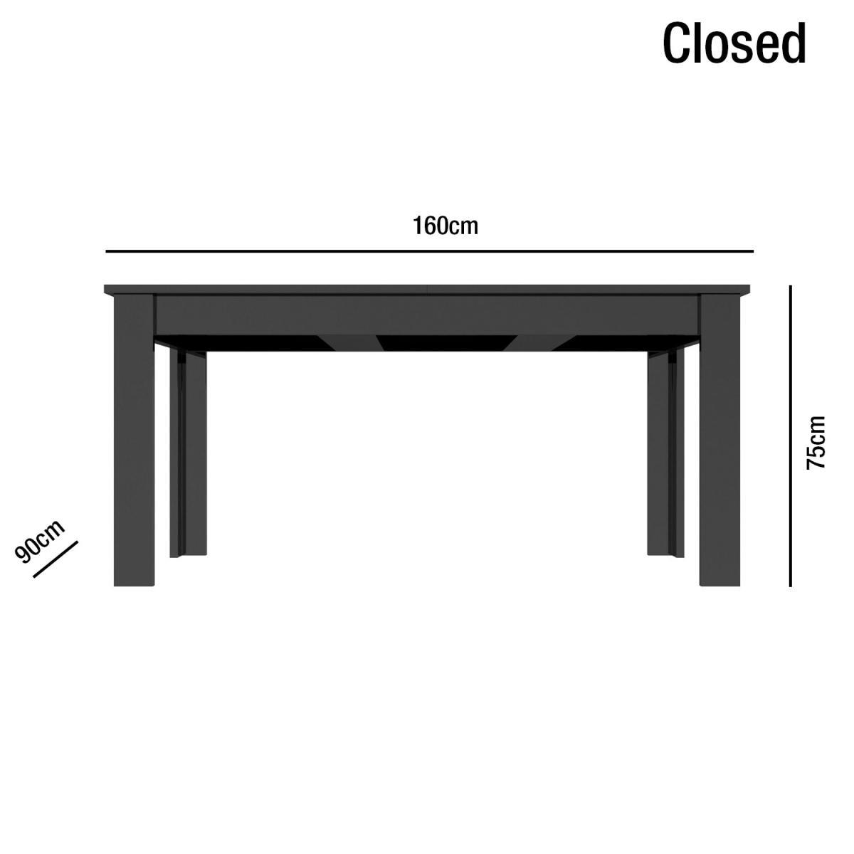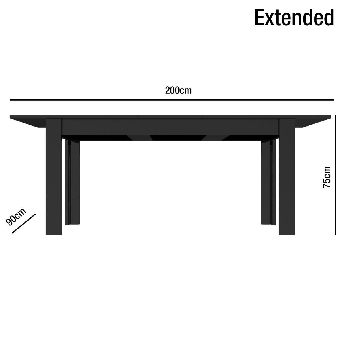 Features we love Ideal for 4-6 diners – folding design saves space when not in use. Quickly make extra dining space with the extension leaf mechanism. Clean design with a sleek finish adds a modern touch to the dining space Smooth high gloss finish – super easy to wipe clean. In jet black it easily coordinates with other dining furniture. Including just the table you're free to pair it with the chairs of your choice All about me. This contemporary Vivienne dining table has a hidden secret it features a clever table top design where the top pulls apart to lift up an extra table leaf giving extra dining space. It comes in handy for increasing your dining space when guests come to call when the family are around for Sunday lunch or if you're simply serving up a feast and need more space for dishes. The table comfortably accommodates four diners when closed and when fully extended there's plenty of space for six diners. As it's neat and compact when closed it's great for saving space in your dining room or kitchen when it's not in use. The table comes on its own so you have the freedom to pair it with the chairs of your choice and the number that best suits your household. With a clean and linear design all in jet black the Vivienne table is super easy to coordinate with other dining furniture and many décor schemes. The sleek high gloss finish gives the table its own natural shine that reflects light beautifully plus the smooth nature of the table makes it super easy to wipe clean. Need to know. Dimensions (closed). H75 x W160 x D90 cm Dimensions (extended). H75 x W200 x D90 cm Size. 4-6 Diners Material. Wood combination Finish. Black high gloss Assembly required. Yes.