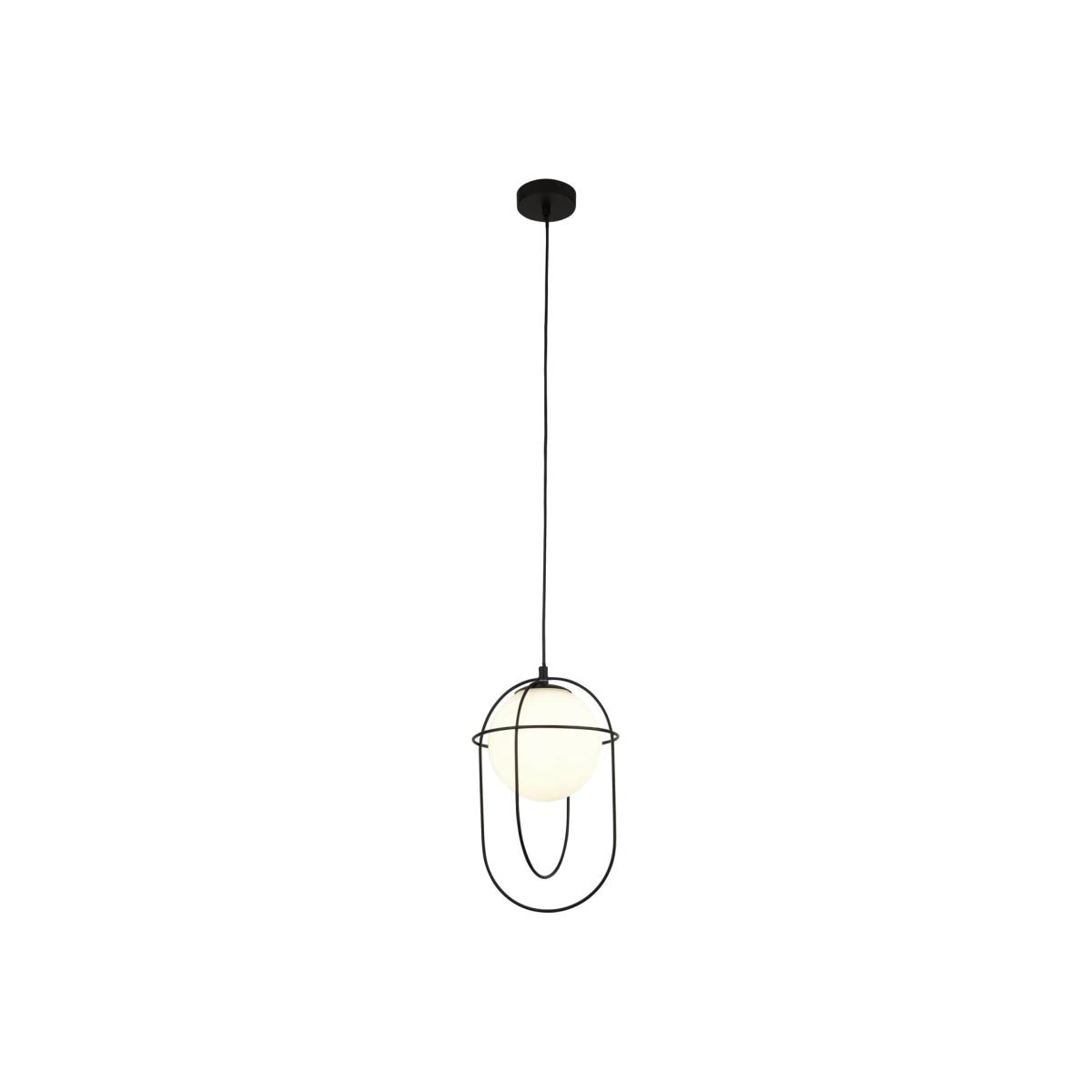 Black Hoop Pendant Light with Opal Glass Ball - Searchlight
