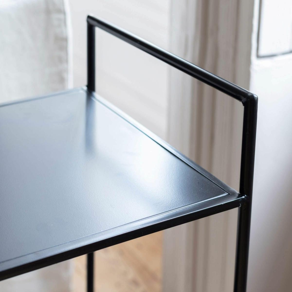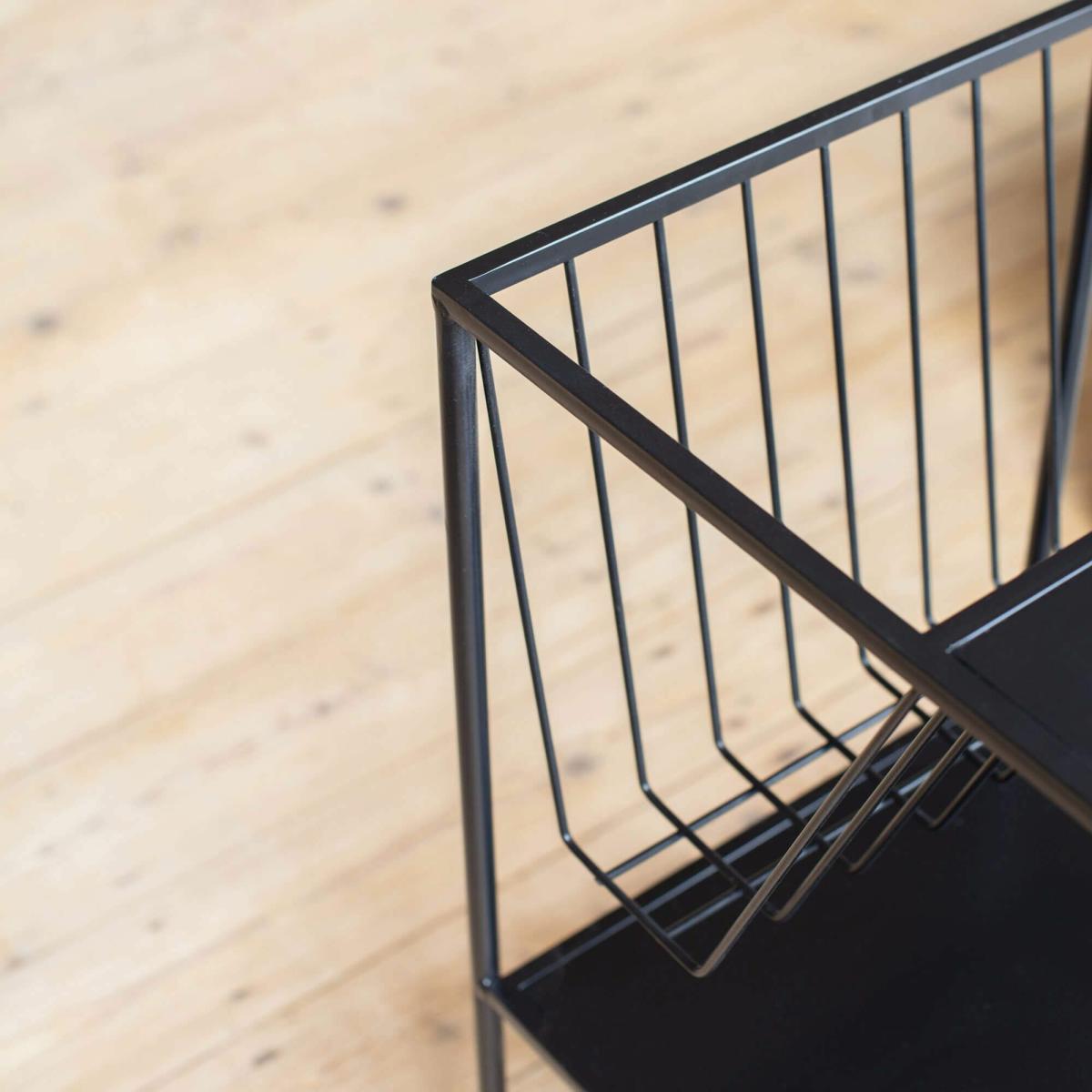 Whether you need a bar cart, a plant stand, a bathroom display or a side table, this versatile black metal trolley is perfect for the minimalist home. Crafted from lacquered steel with two shelves and lockable castors and featuring a wire basket.