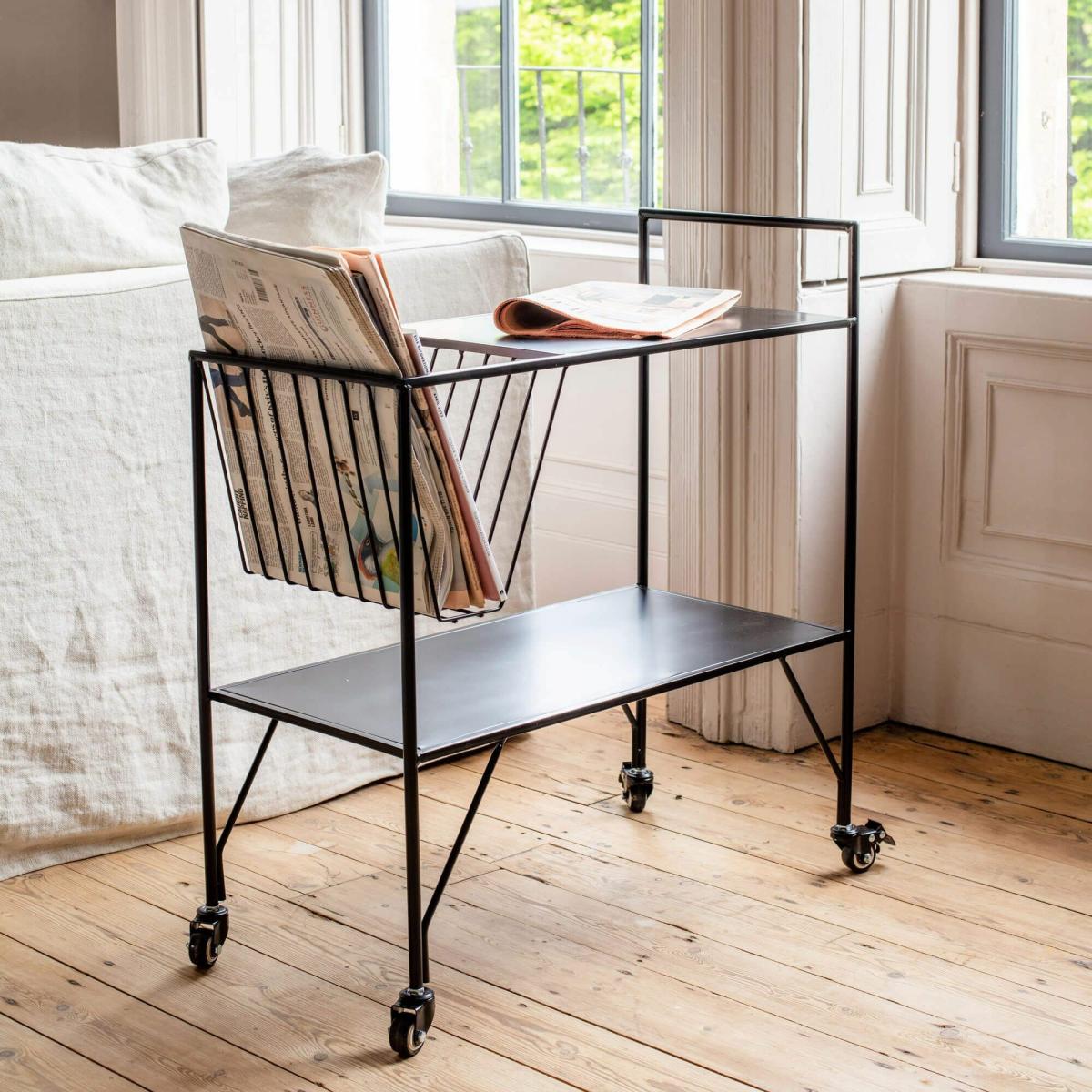 I love this trolley for its sleek, industrial vibe - it’s a practical piece that adds a touch of utilitarian style to any space. It works particularly well in modern or minimalist interiors, but it can also add an interesting contrast in more traditional schemes. Practical styling tips include using it as a drinks station during dinner parties or as a mobile bar cart in open-plan living areas. Its black metal frame and casters make it both lightweight and versatile, so it’s easy to reposition as needed. Keep accessories simple - think glassware, a few bottles, or a statement statement piece to keep the look clean and functional.