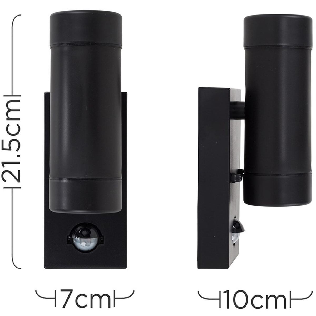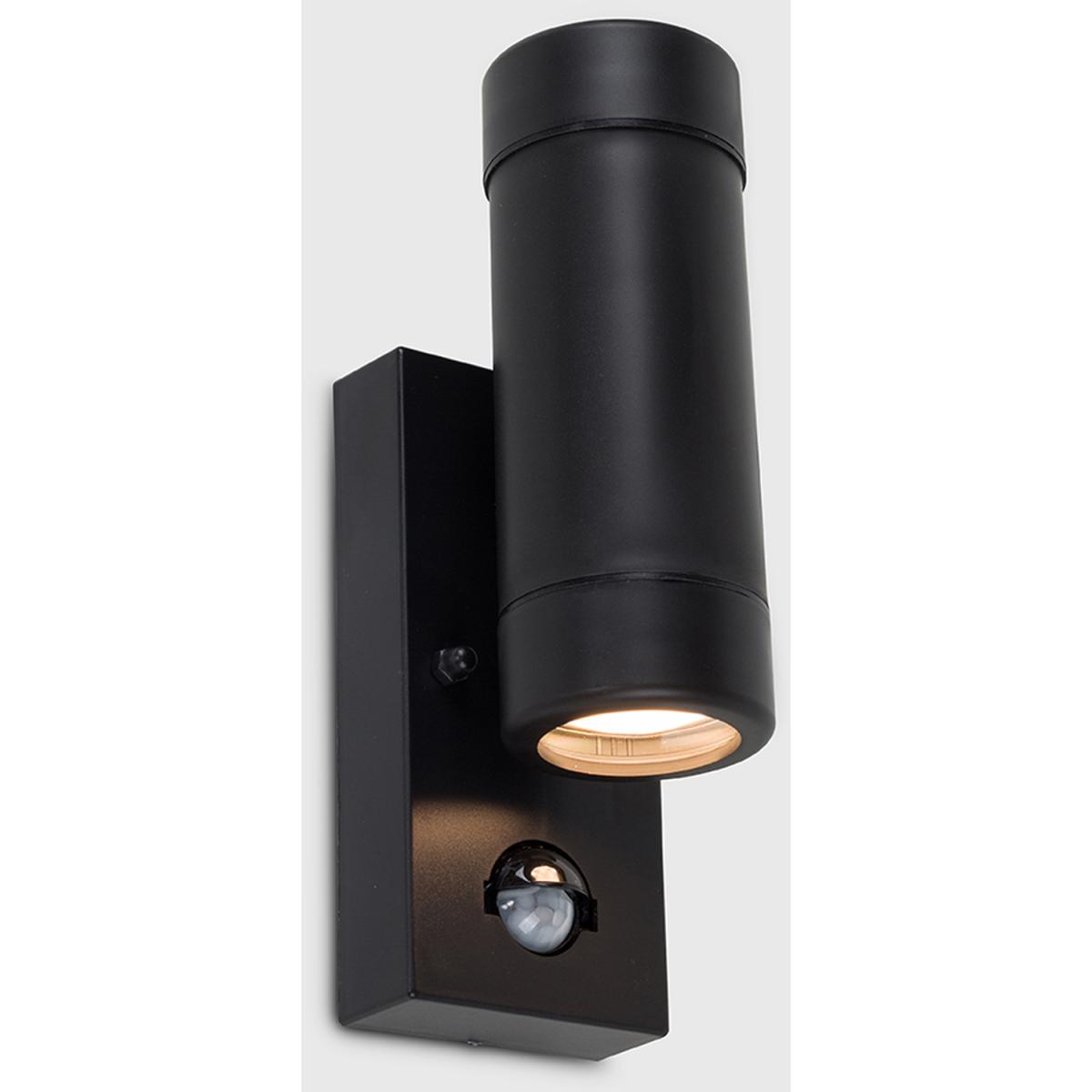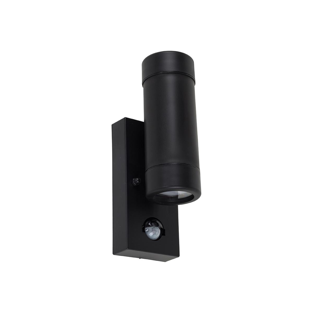 Black IP44 Rated Outdoor Garden Up Down Wall Light With PIR Motion Sensor - Black