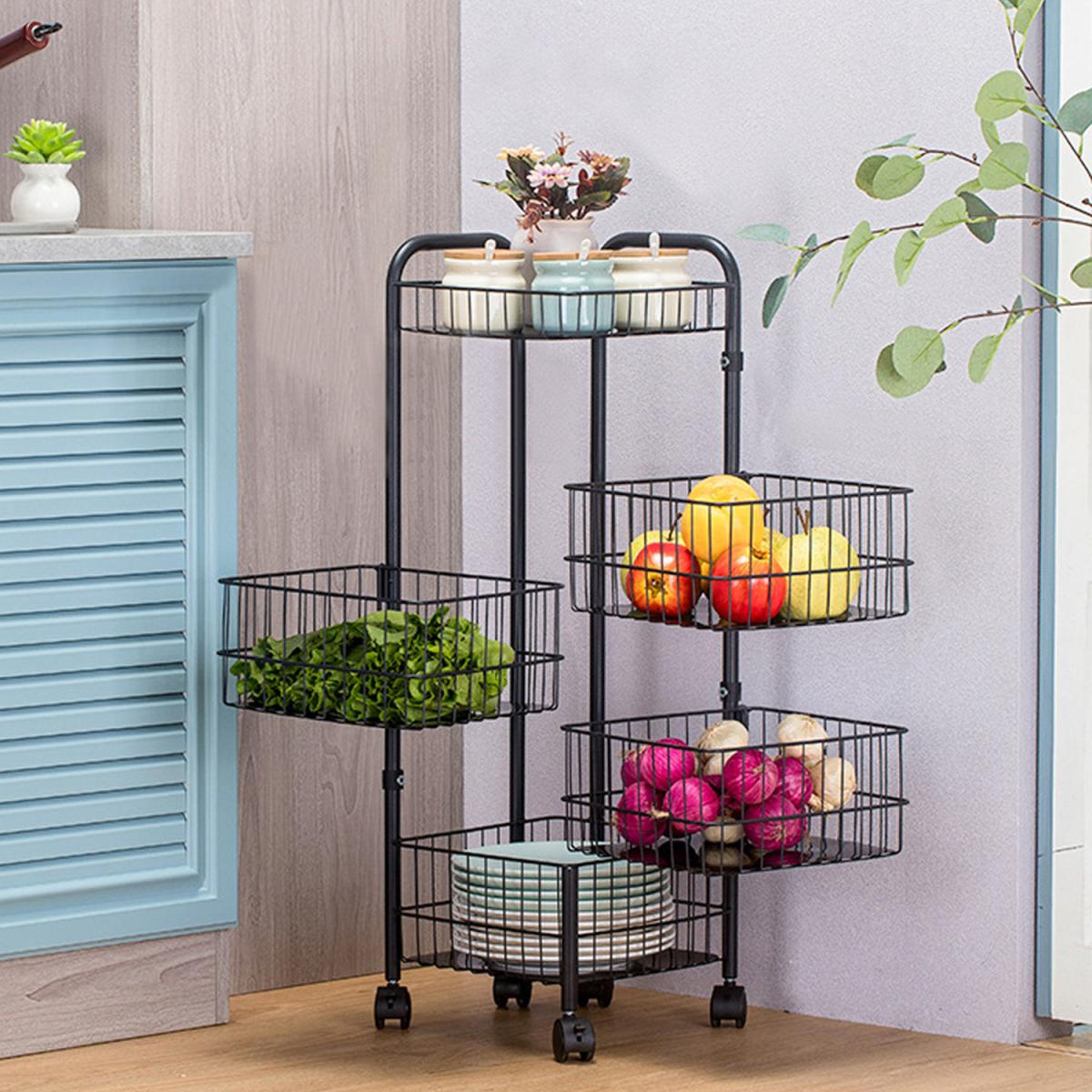Black Iron Multi-Layer Rotating Kitchen Trolley Rack - Black
