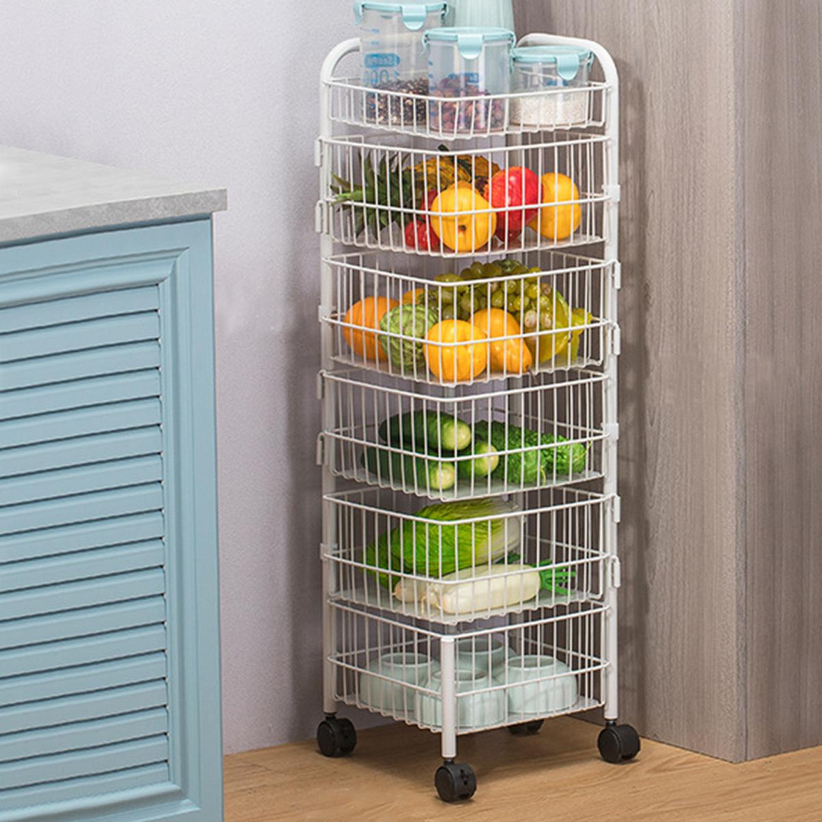 Black Iron Multi-Layer Rotating Kitchen Trolley Rack - White
