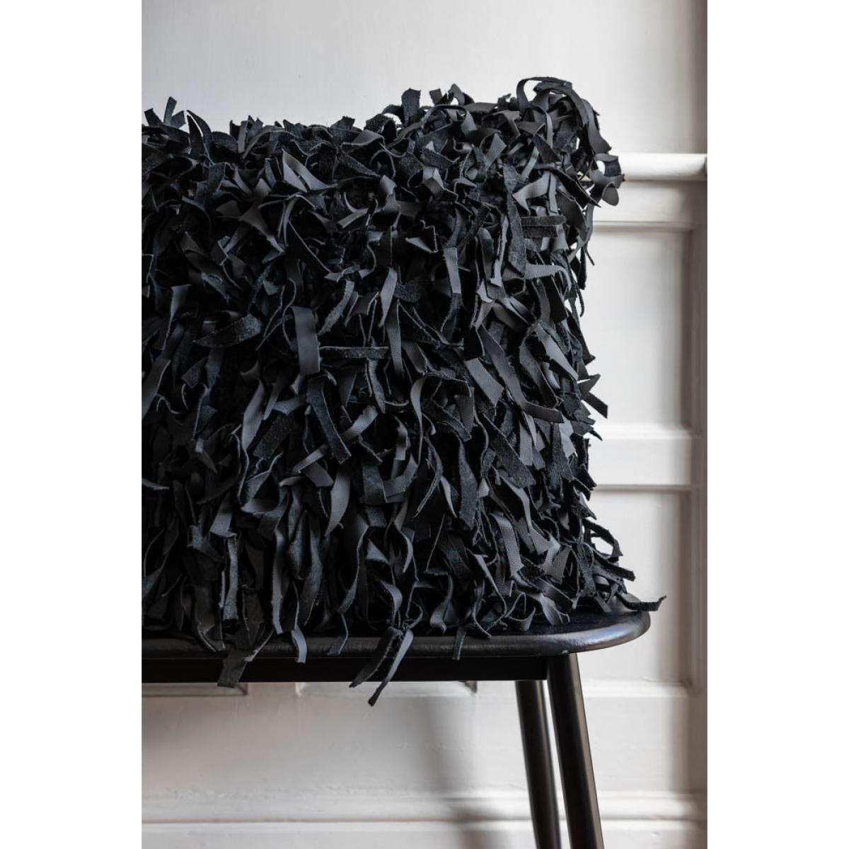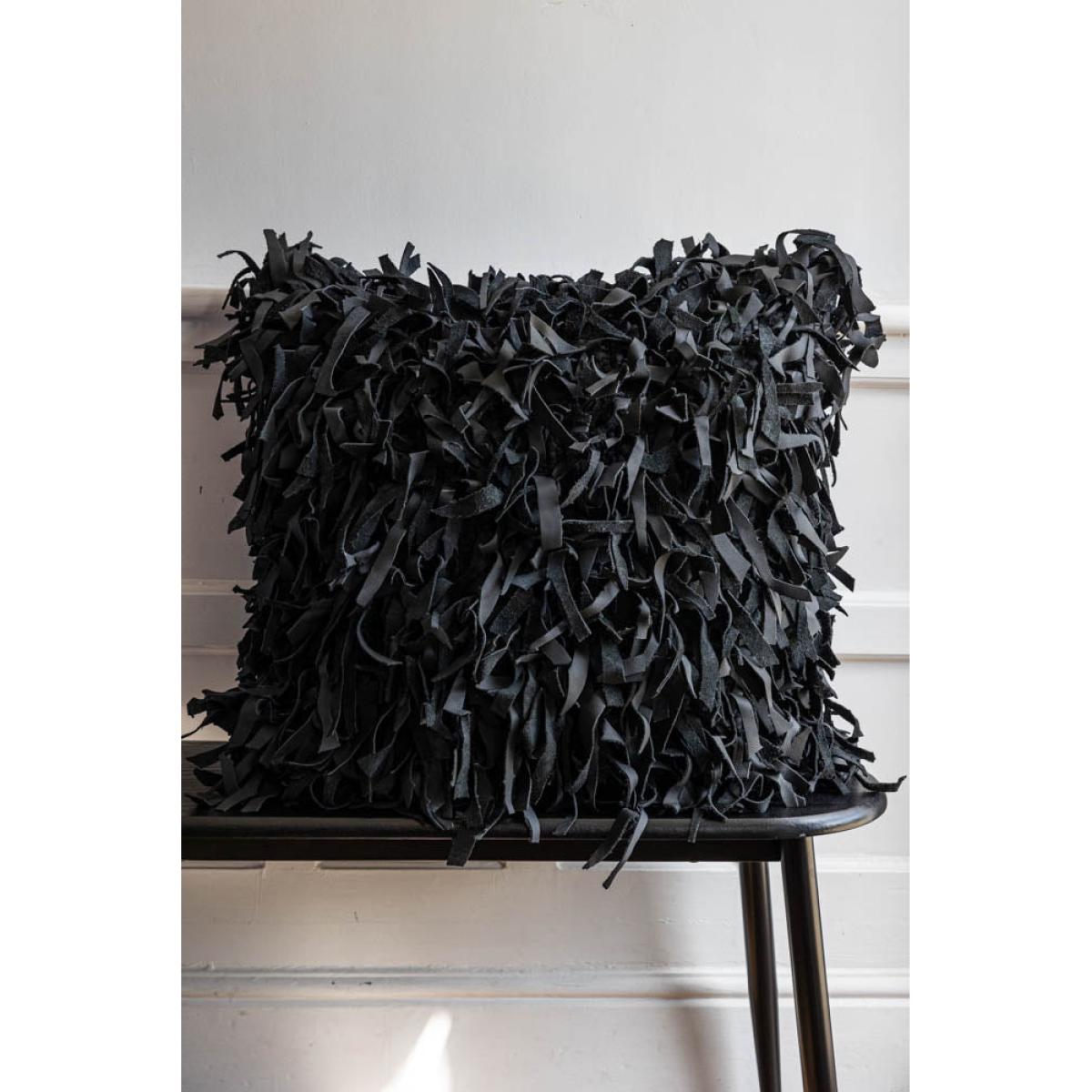 <!--td --> Our Black Leather Cushion Cover is designed to bring a touch of sophisticated glamour to your home. Made from black leather, this cushion cover features an array of tassels all over, adding an amazing, textured statement to any space. Perfect for creating that coveted New York apartment vibe, this cushion cover evokes urban chicness while offering a smart, contemporary look. Whether accenting a stylish armchair or adding flair to your bed or sofa, it’s the ideal accessory for those who appreciate luxe and design. Easy to style, this cushion is an invitation to indulge in modern aesthetics. Transform your space into a chic sanctuary and let your décor speak volumes!- Black Leather Cushion Cover- Measures: H60cm x W60cm - Material: Leather