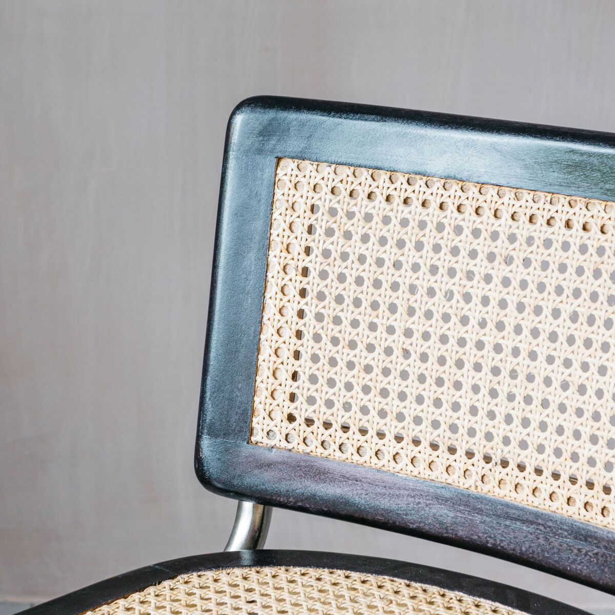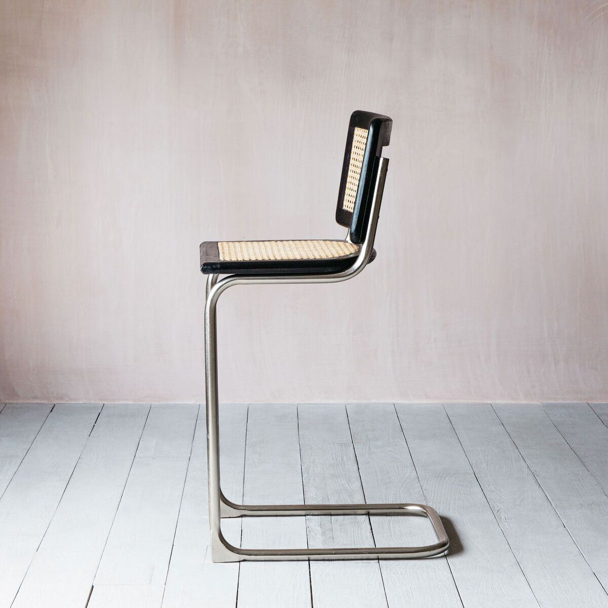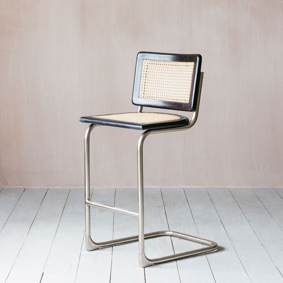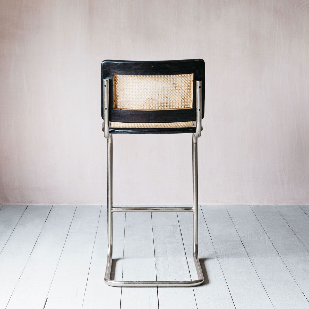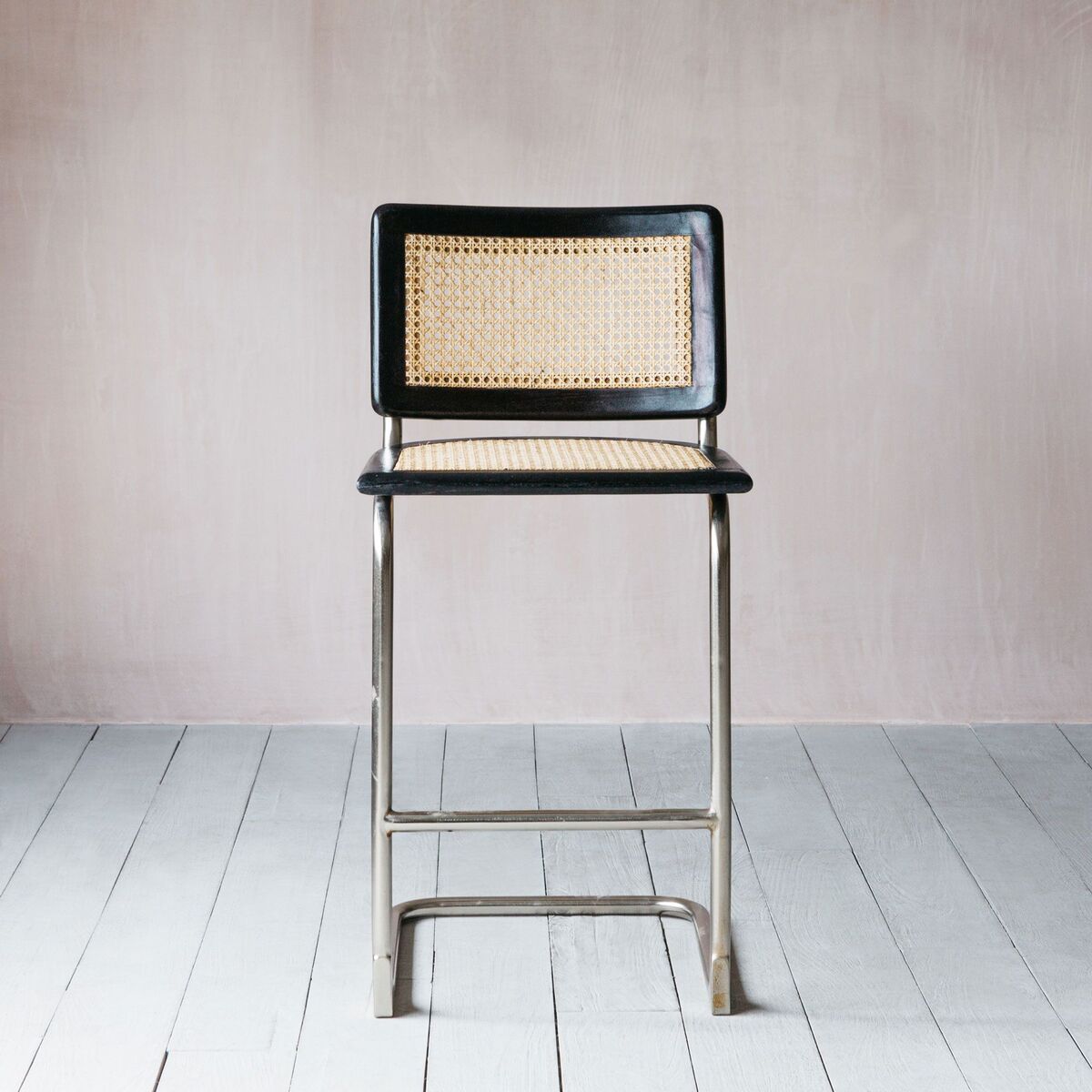 A sleek retro bar stool with a black and cane seat and polished chrome legs, create a refined seventies dining experience with these chairs.