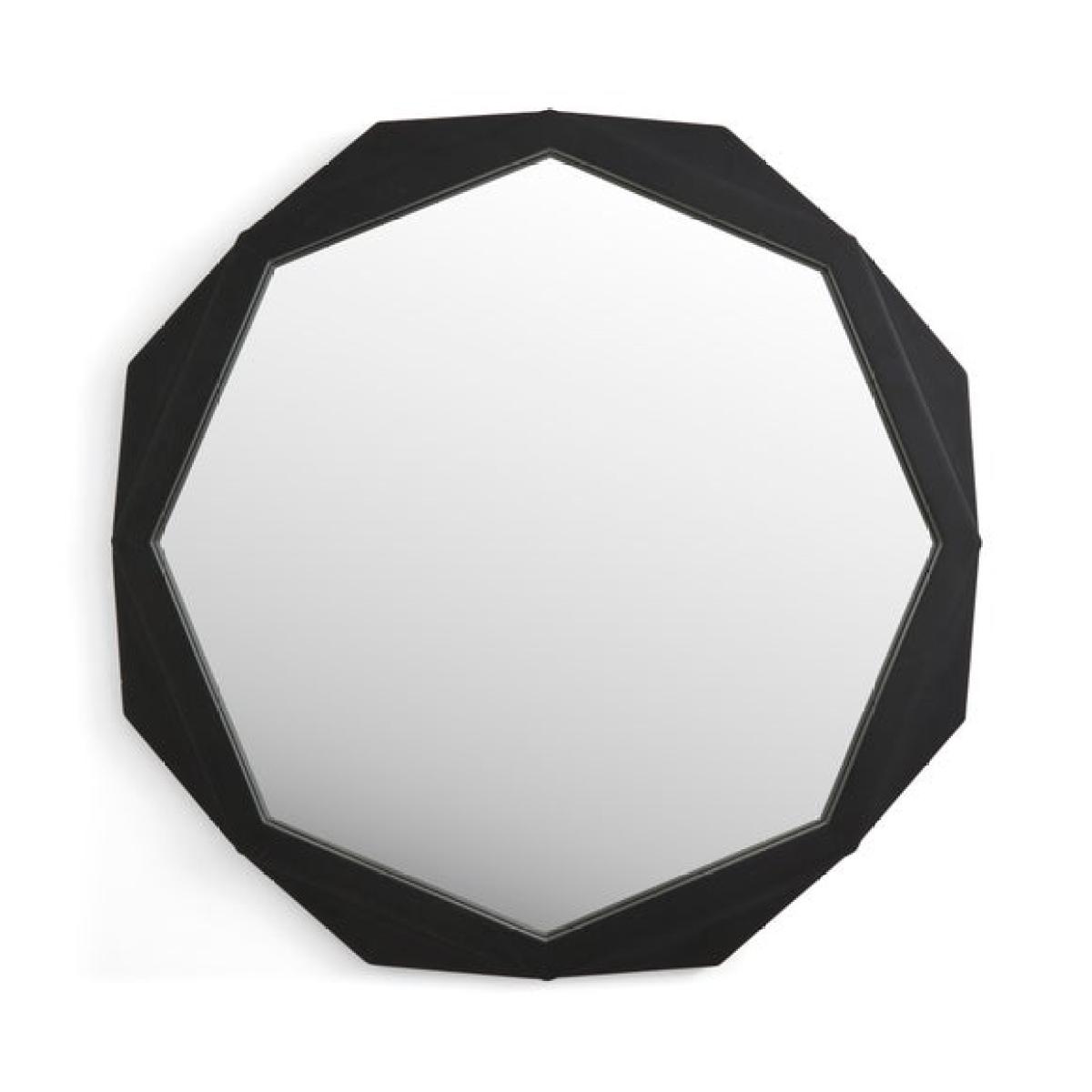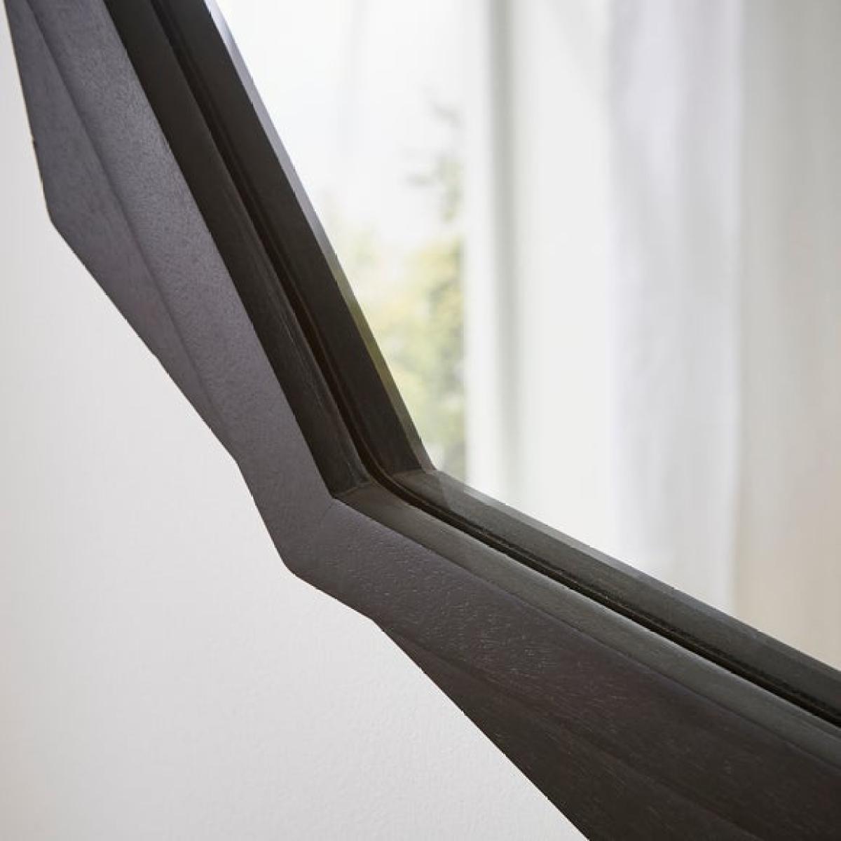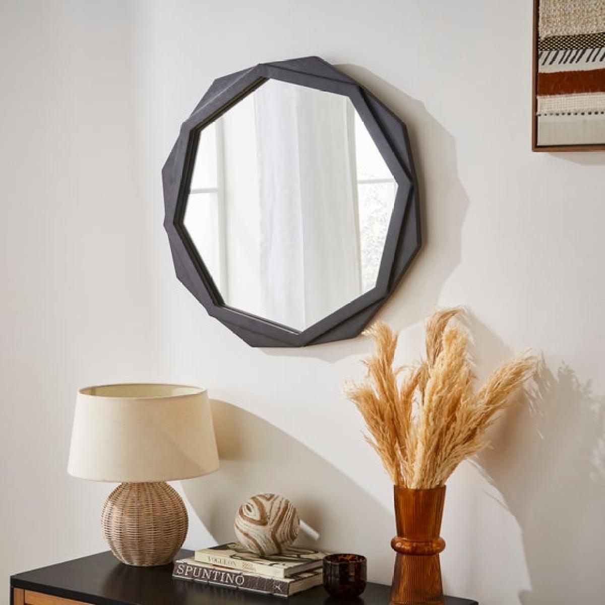 * Mango wood * Black finish * Offset octagon shape * Wall mirror This octagonal wall mirror features an offset geometric design with layered detailing for added depth. Made from mango wood with a bold black finish, it brings a modern edge to any room. Ideal for hallways, living areas or bedrooms where you want to combine function with standout style, the mirror helps reflect light and create a sense of space. A bold yet versatile piece that suits both contemporary and classic interiors. Please note: This mirror is not suitable for bathrooms.