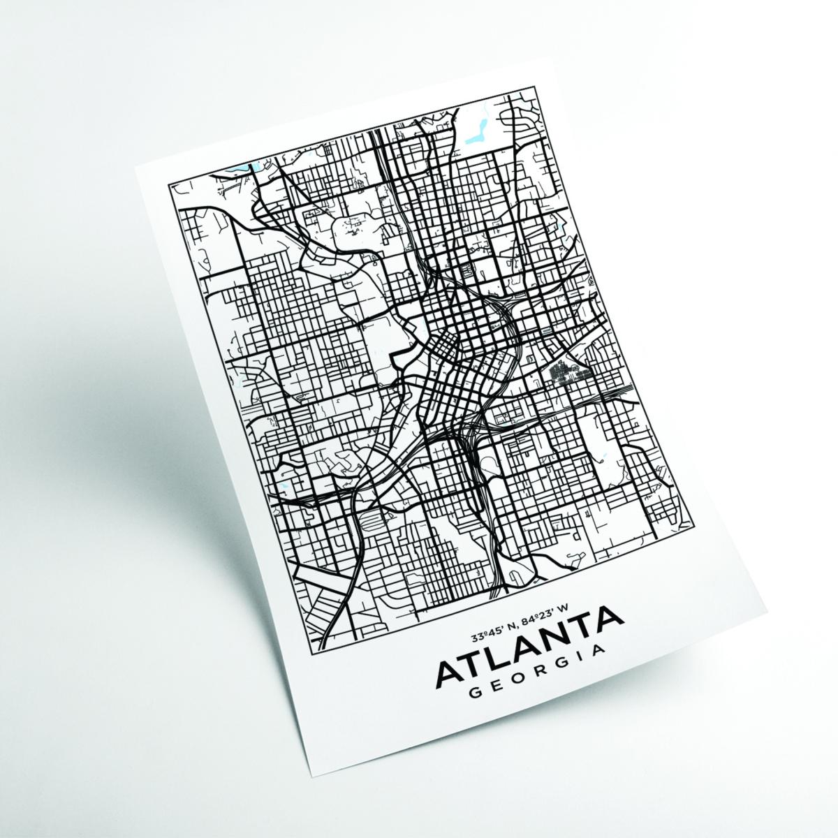 Black Map Of Atlanta Georgia A3 297 X 420Mm Stanley Print House