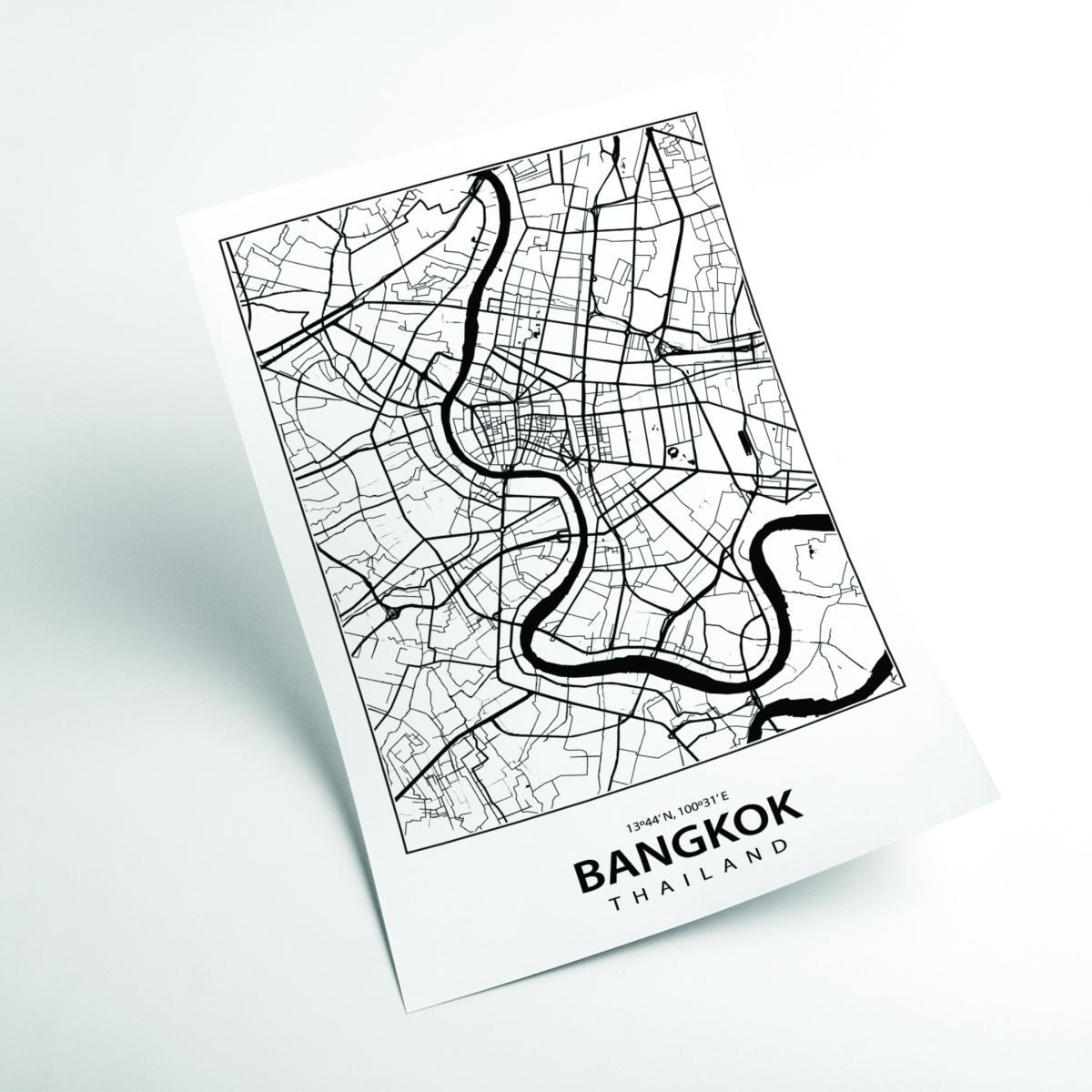 Black Map Of Bangkok Thailand A3 297 X 420Mm Stanley Print House
