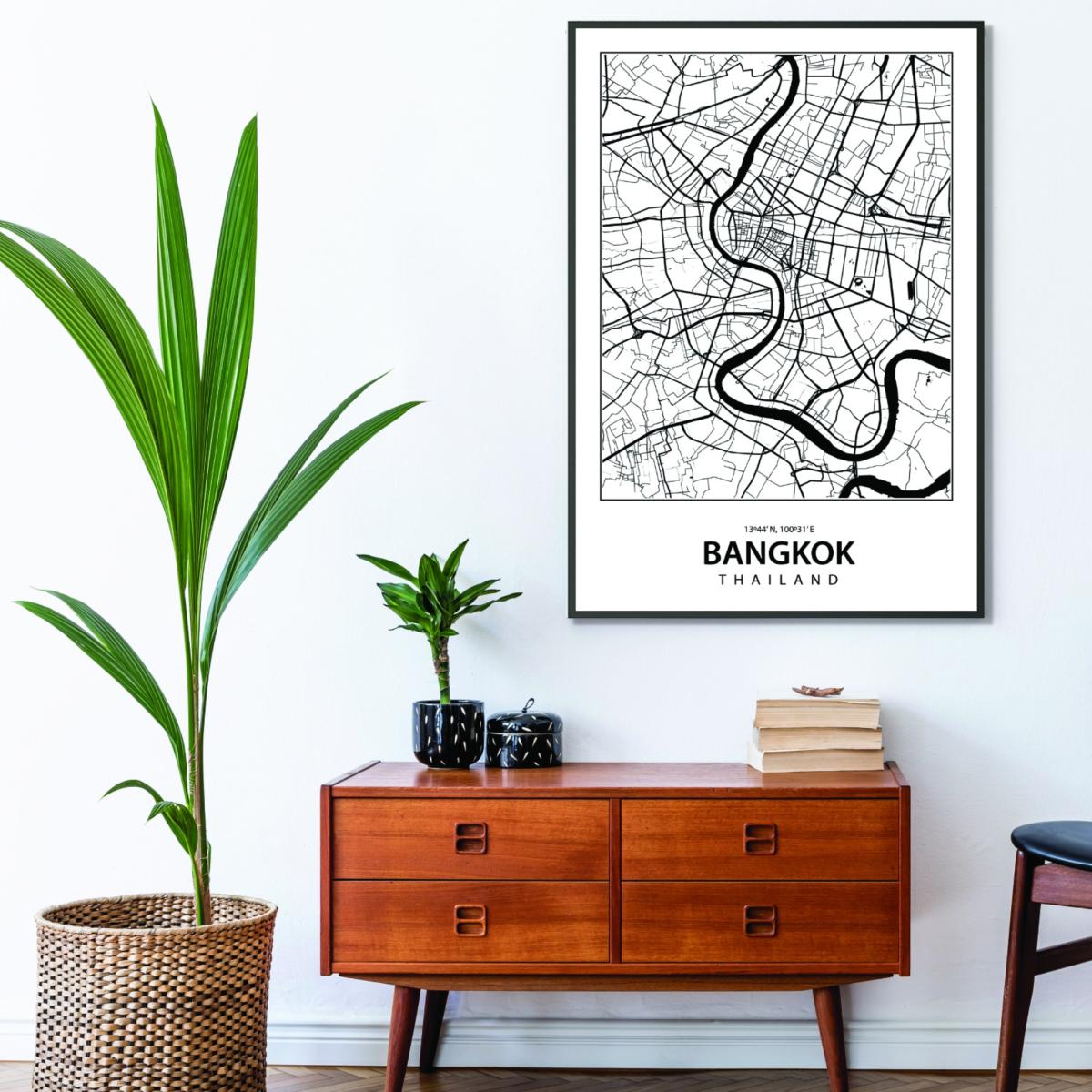 I really like the black map of Bangkok as it adds a modern, urban feel to any space. Its monochrome palette makes it versatile, ideal for contemporary or minimalist interiors, and it works well framed as a focal point over a sofa or dining area. This piece pairs beautifully with neutral tones or even bold colour contrasts to make it pop. Practical styling tips include combining it with other city or travel-inspired artwork for a themed gallery wall, or placing it in a room where you want to evoke a sense of adventure or cosmopolitan vibe. Because of its size, it’s best suited for larger walls or over a statement piece of furniture for maximum impact.