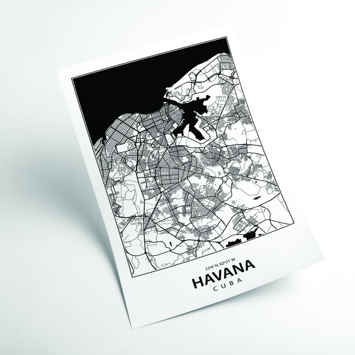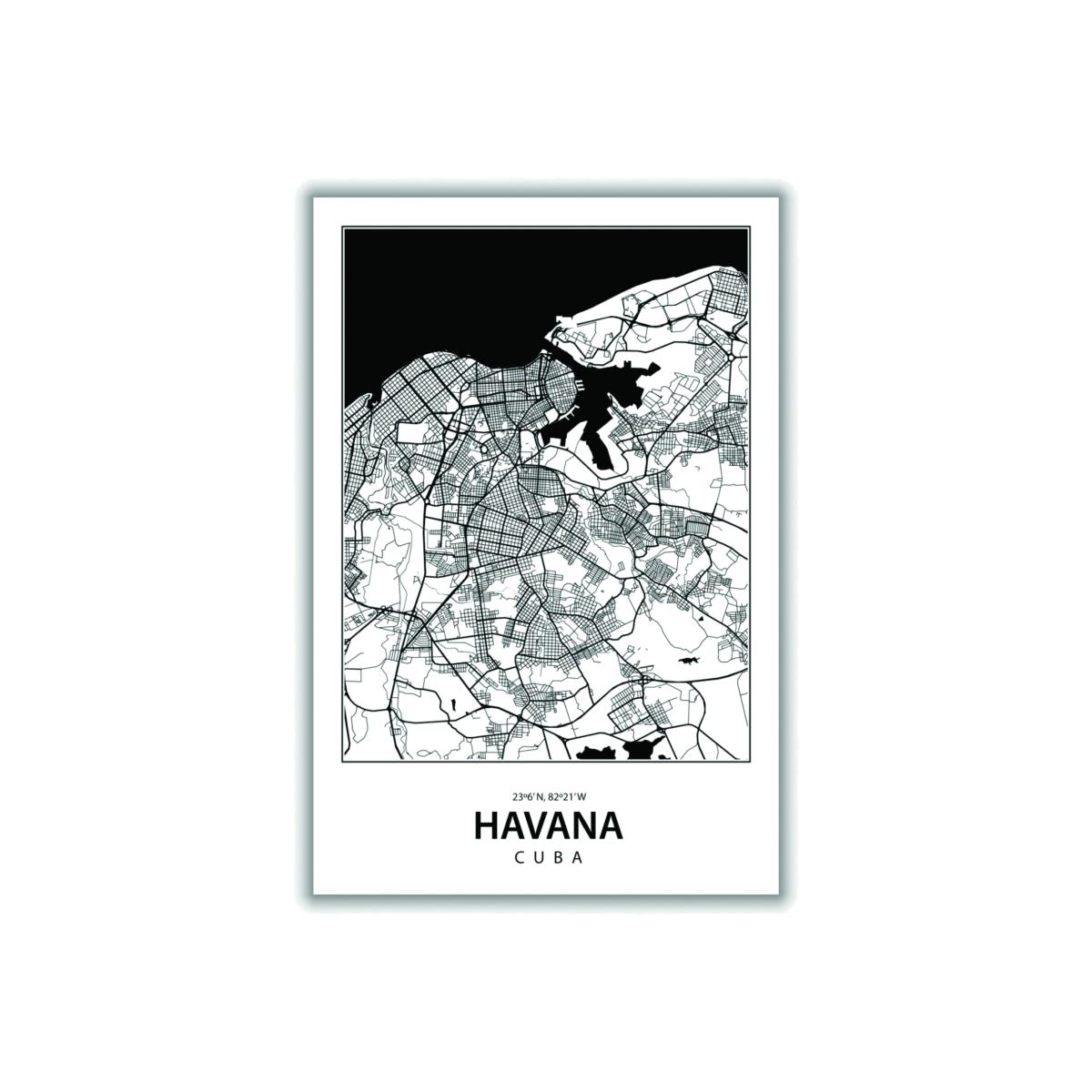 Black Map Of Havana Cuba A4 210 X 297Mm Stanley Print House