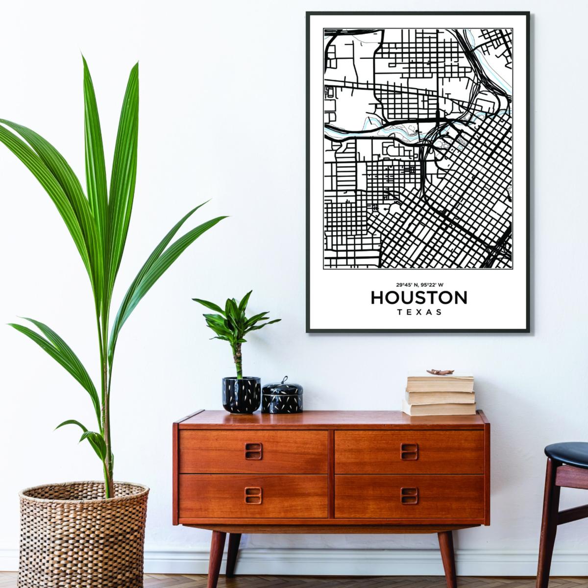 The black map of Houston is a versatile piece that adds an urban, modern touch to any space. I love how it works well in contemporary or industrial interiors, especially when paired with sleek furniture and metallic accents. It’s an excellent choice for creating a focal point above a sofa or in a study, particularly in homes or offices with a geographical or city-living theme. To style it effectively, consider framing it with a minimal border to keep the look clean, and pair it with smaller monochrome accessories for a cohesive look. It’s a practical yet striking piece that brings a sense of place and personality into your decor.