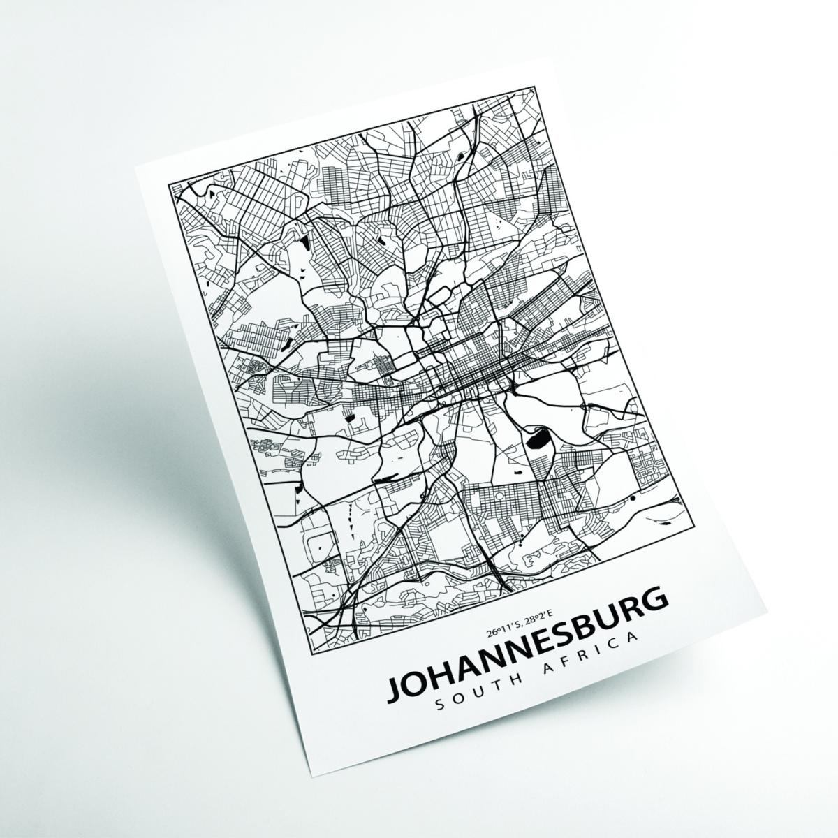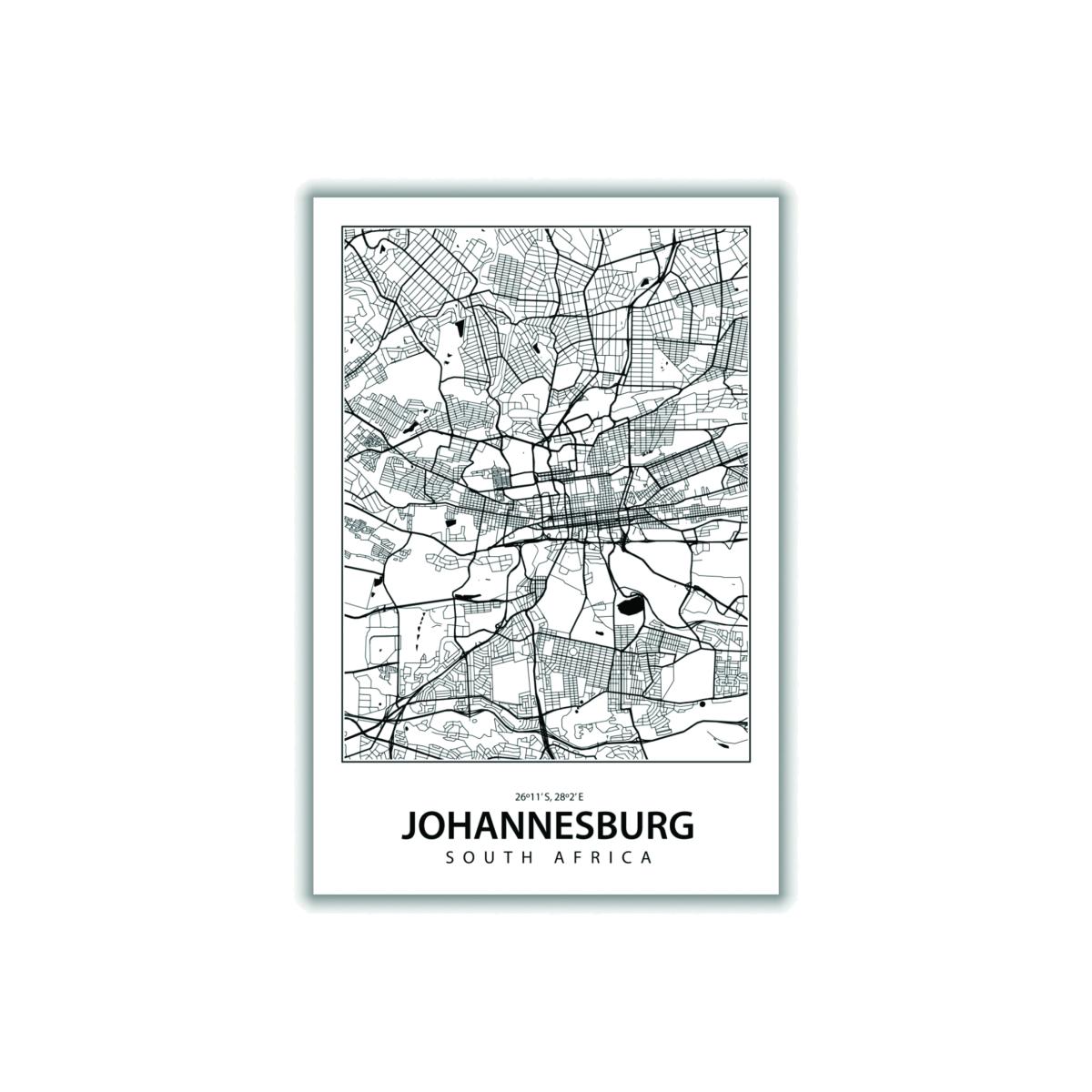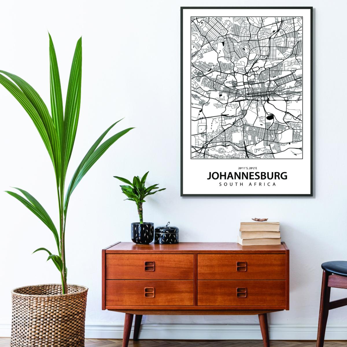 I really like this map of Jo’burg for its minimal yet detailed aesthetic. It works particularly well in contemporary or industrial-style interiors where clean lines and monochrome palettes are key. The black map detail lends itself to pairing with neutral tones or metallic accents, making it versatile for different colour schemes. Practical styling tips include framing it with a slim matte border or mounting it on a textured wall to make it stand out. It’s also a great conversation piece in living rooms, offices, or hallways, especially for those with a personal connection to the city. Overall, the map’s straightforward design makes it a timeless addition that brings character without overwhelming the space.