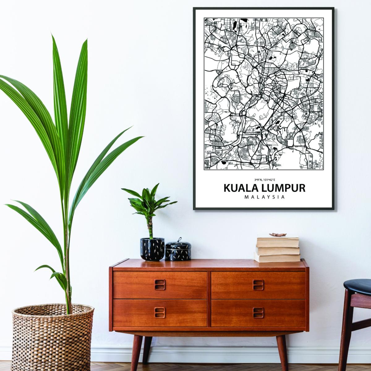 I love this black map of Kuala Lumpur - it’s a great way to add a touch of urban sophistication to any space. The monochrome palette makes it versatile, working well in modern, minimalist, or industrial interiors. It’s ideal for adding visual interest without overwhelming the room, especially in smaller spaces or as part of a gallery wall. Practical styling tips include pairing it with sleek black or white frames for a contemporary look, or layering it with colourful prints for a more eclectic vibe. Positioning it above a desk or sofa can create a focal point that’s both stylish and meaningful, perfect for those who love travel or cityscapes.